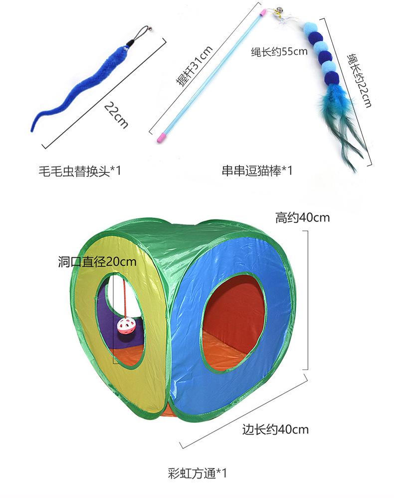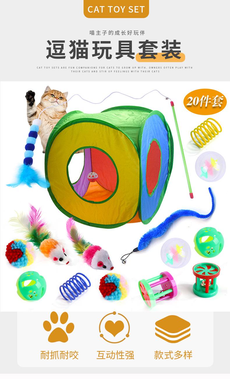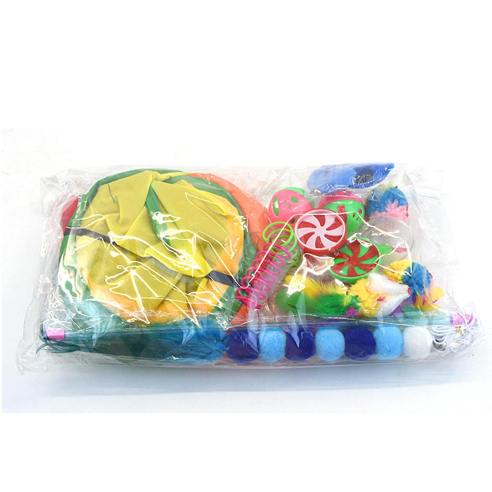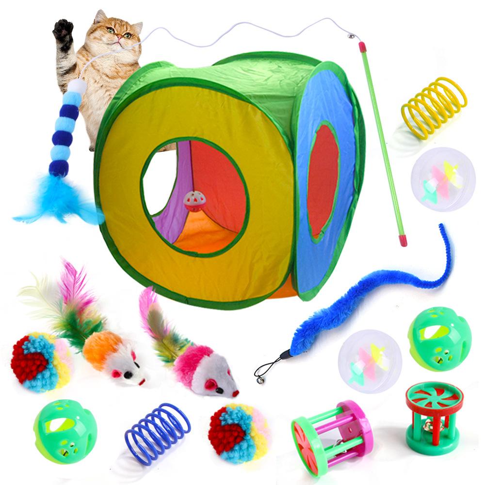 Nuevo juguete para gatos transfronterizo, traje de campana, pelota de peluche, divertido palo para gato, ratón, resorte, túnel para gato, traje de 15 piezas