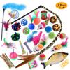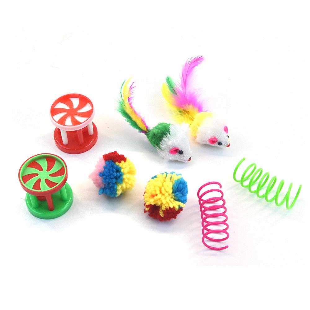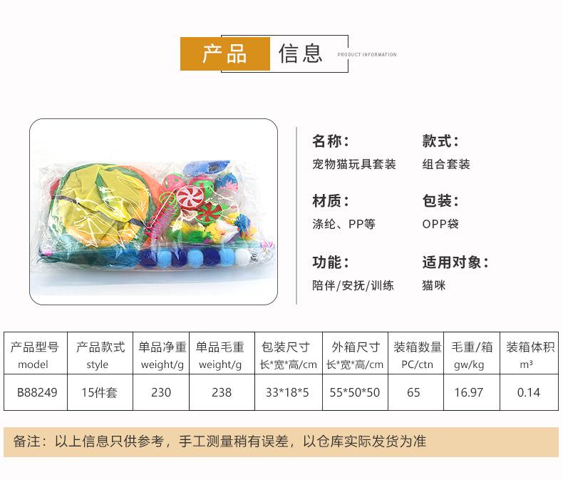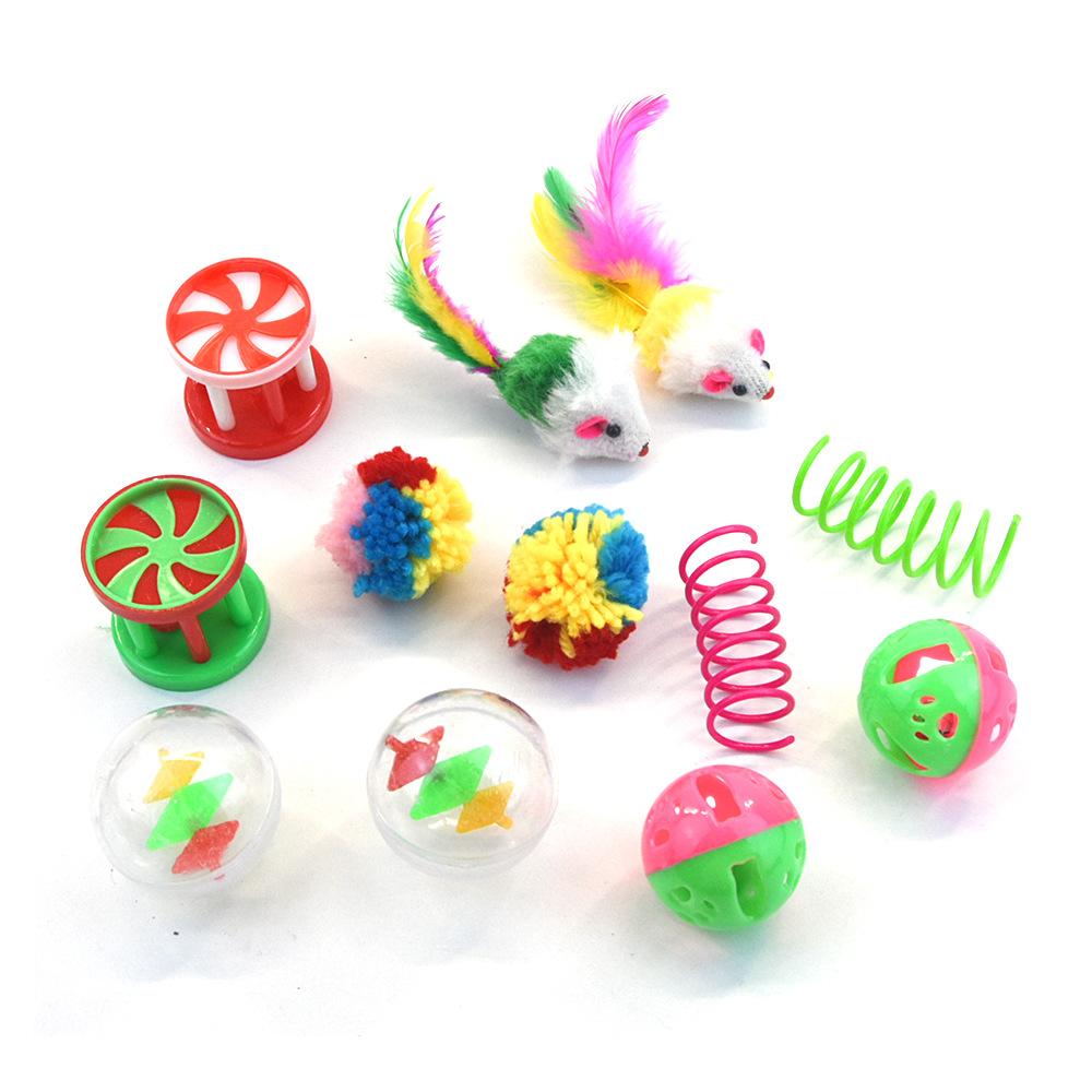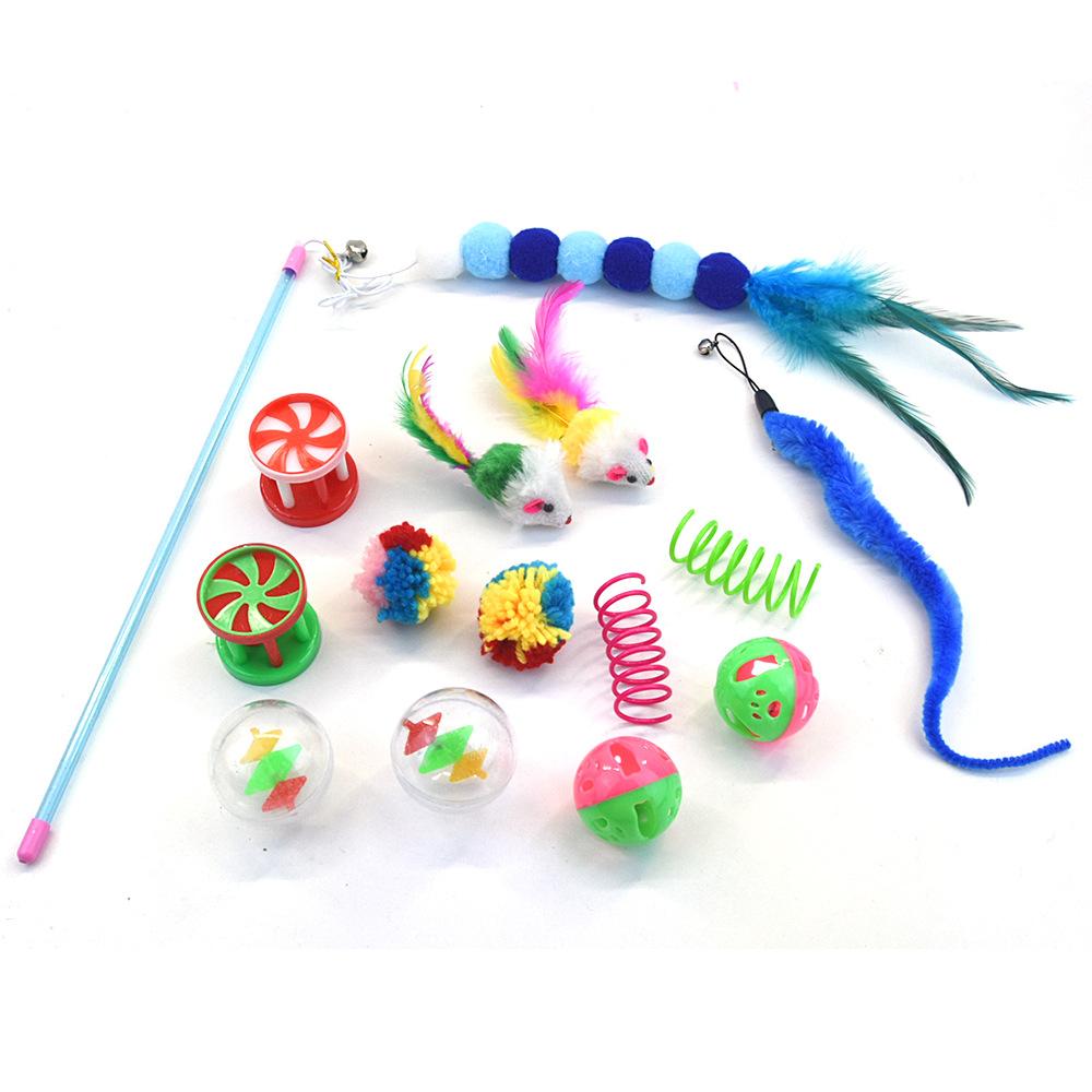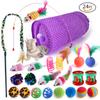 Nuevo juguete para gatos transfronterizo, traje de campana, pelota de peluche, divertido palo para gato, ratón, resorte, túnel para gato, traje de 15 piezas