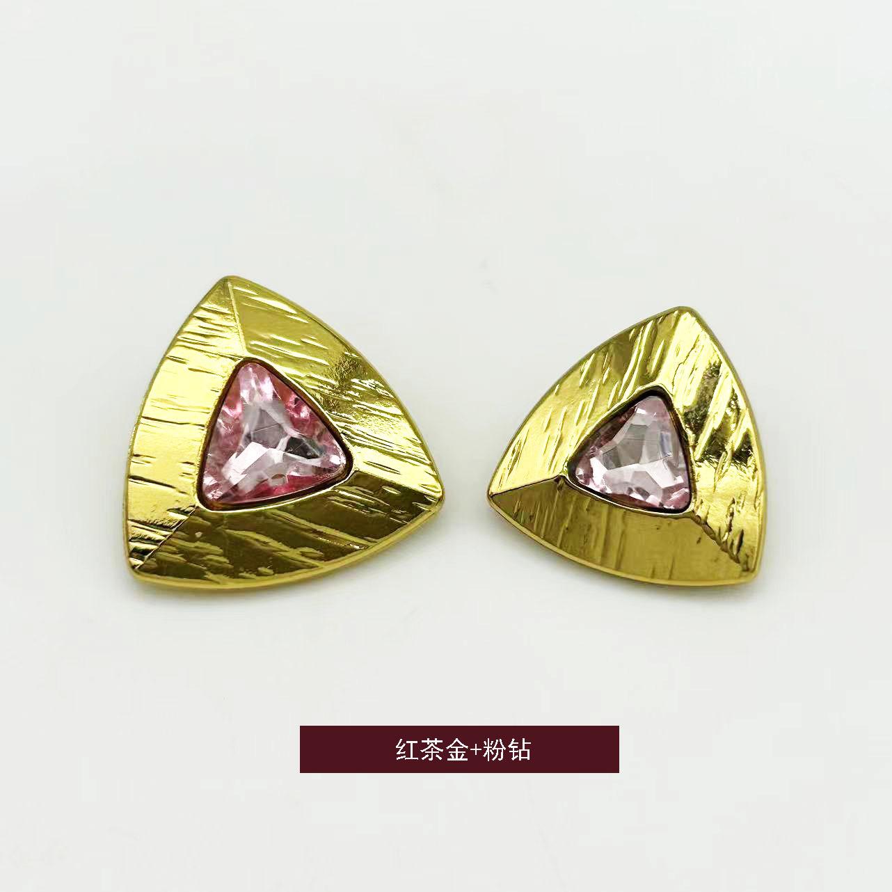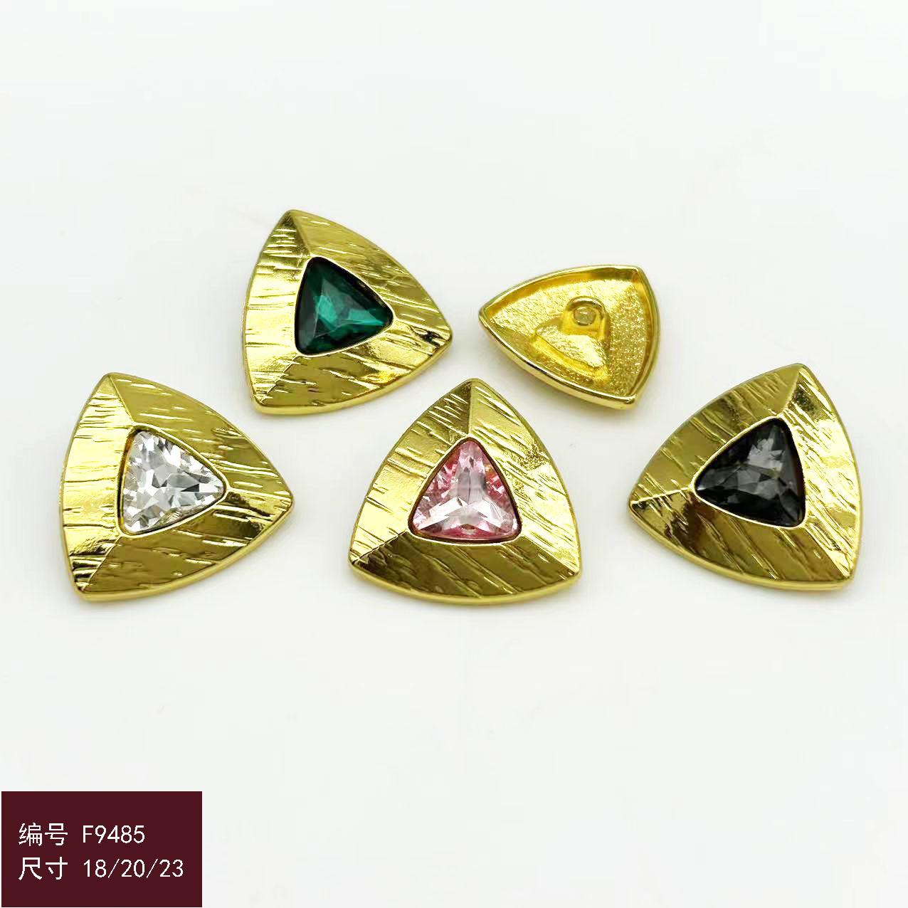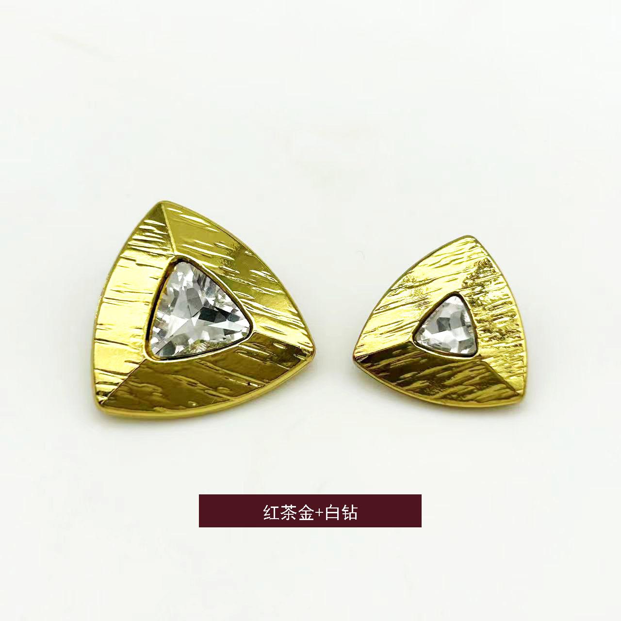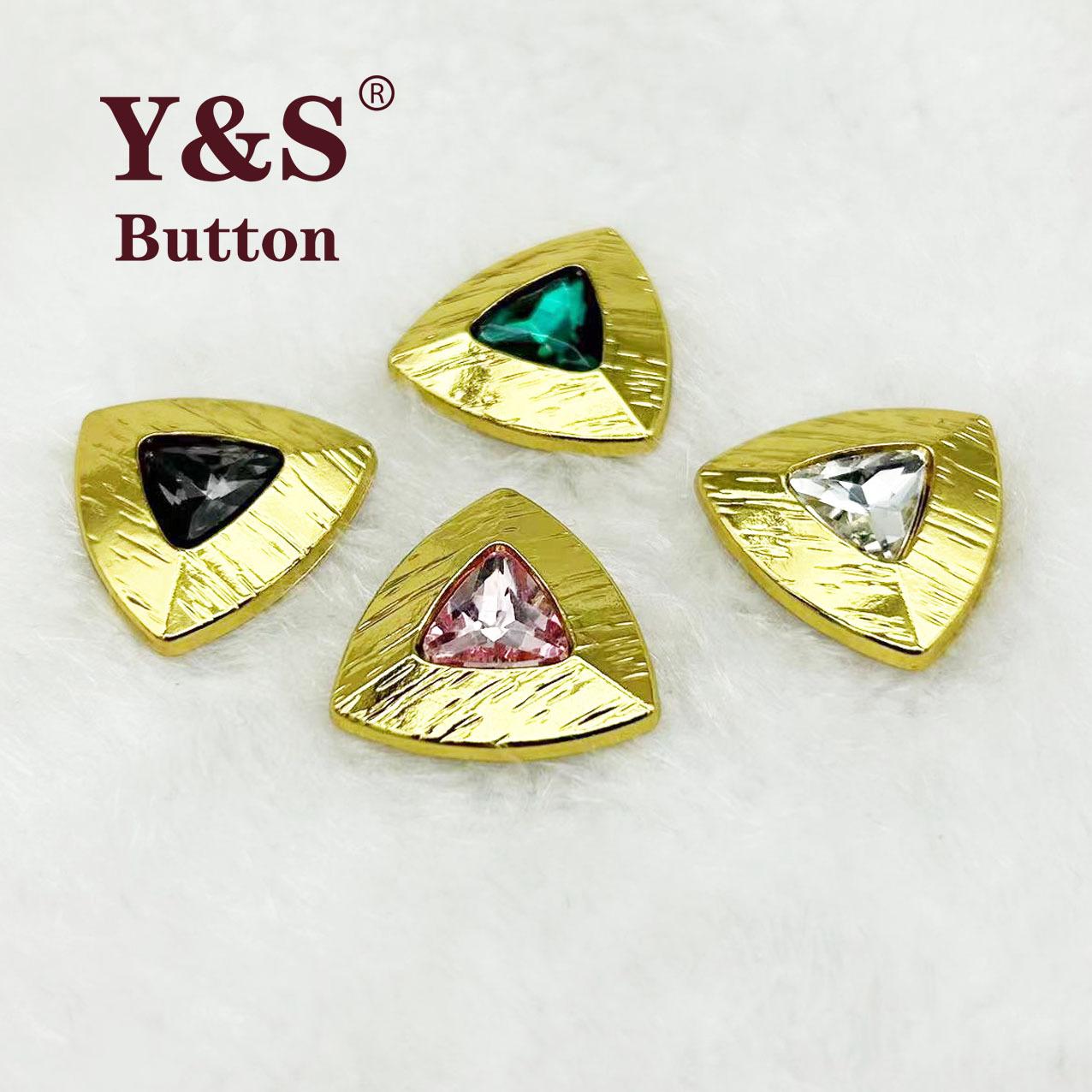 Venta al por mayor de botones de diamante de colores con triángulos de metal para abrigos de mujer, suéteres, abrigos, abrigos, botones decorativos.