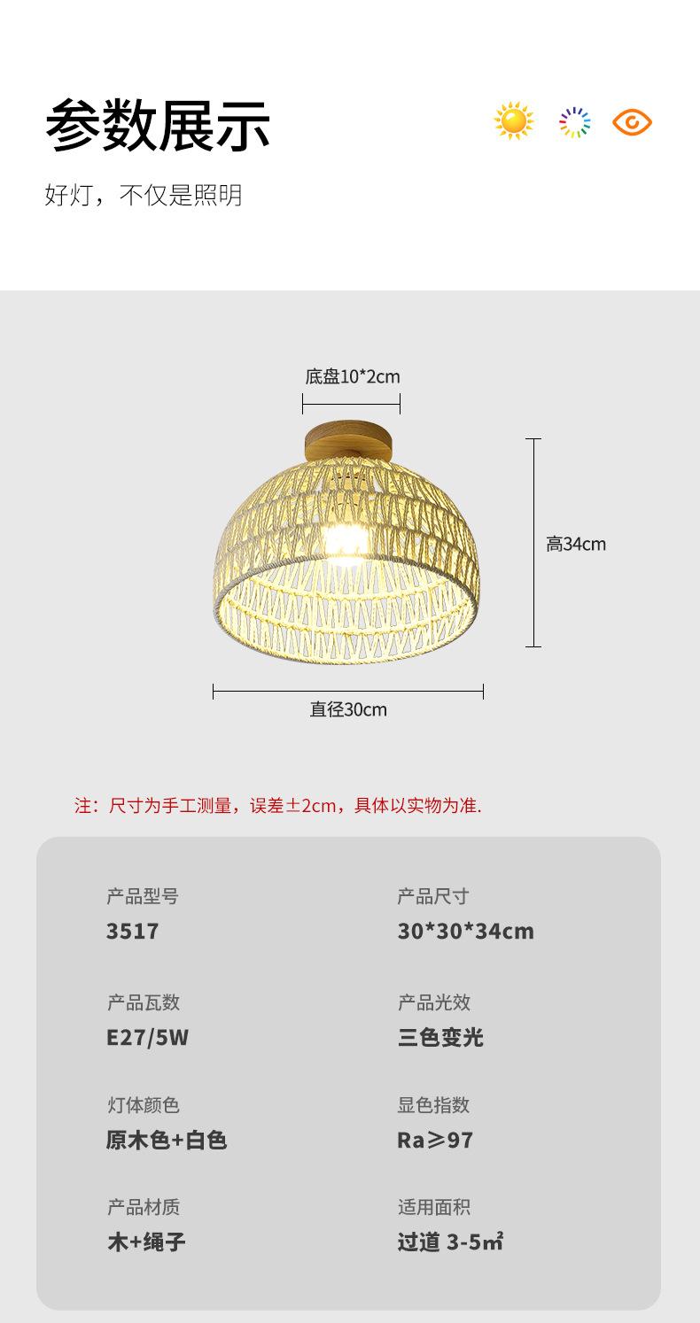 Lámpara de Techo para Pasillo Moderna Minimalista Ratán Escandinava Lámpara para Habitación Dormitorio Cocina Balcón Pasillo Pasillo 021L