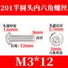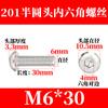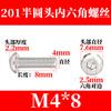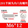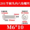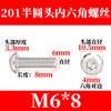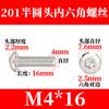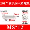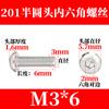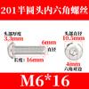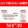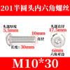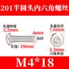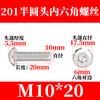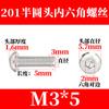 Tornillo de cabeza hexagonal de acero inoxidable 201, tornillo de cabeza plana, tornillo de copa redonda, tornillo de cabeza de hongo M3M4M5M10