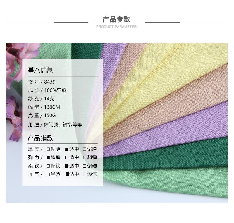 Tela de lino 14, 150 g, lino completo, primavera y verano, nueva tela de lino para vestido y camisa.