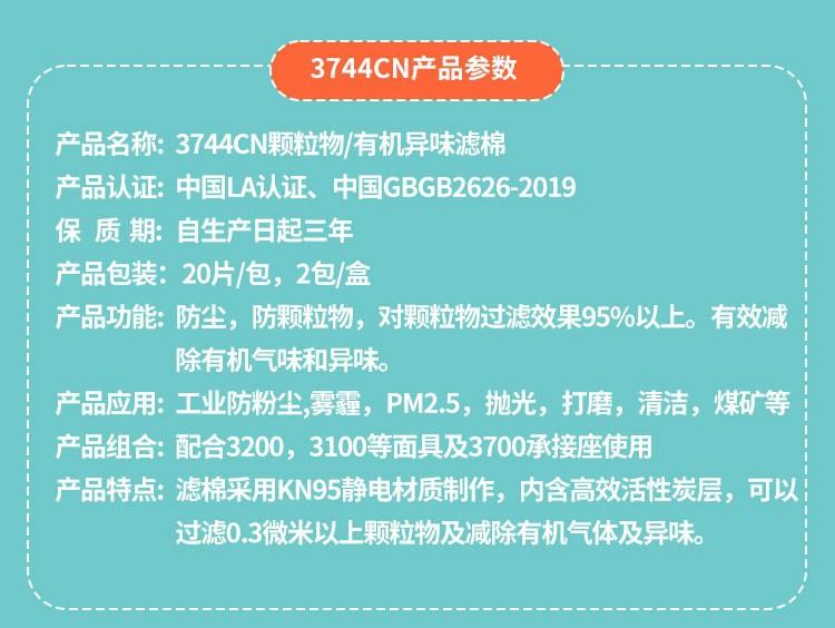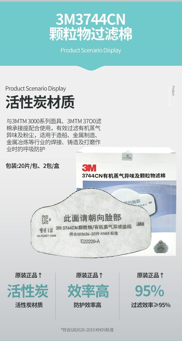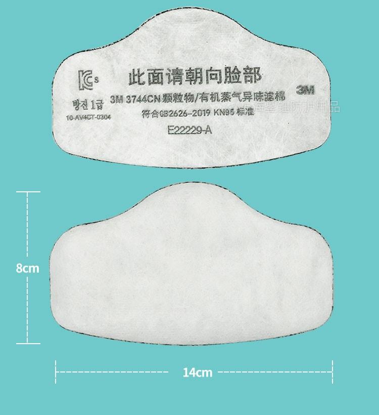3M3744CN gránulos filtro de olor a vapor orgánico algodón filtrante de carbón activado con uso de mascarilla 3200