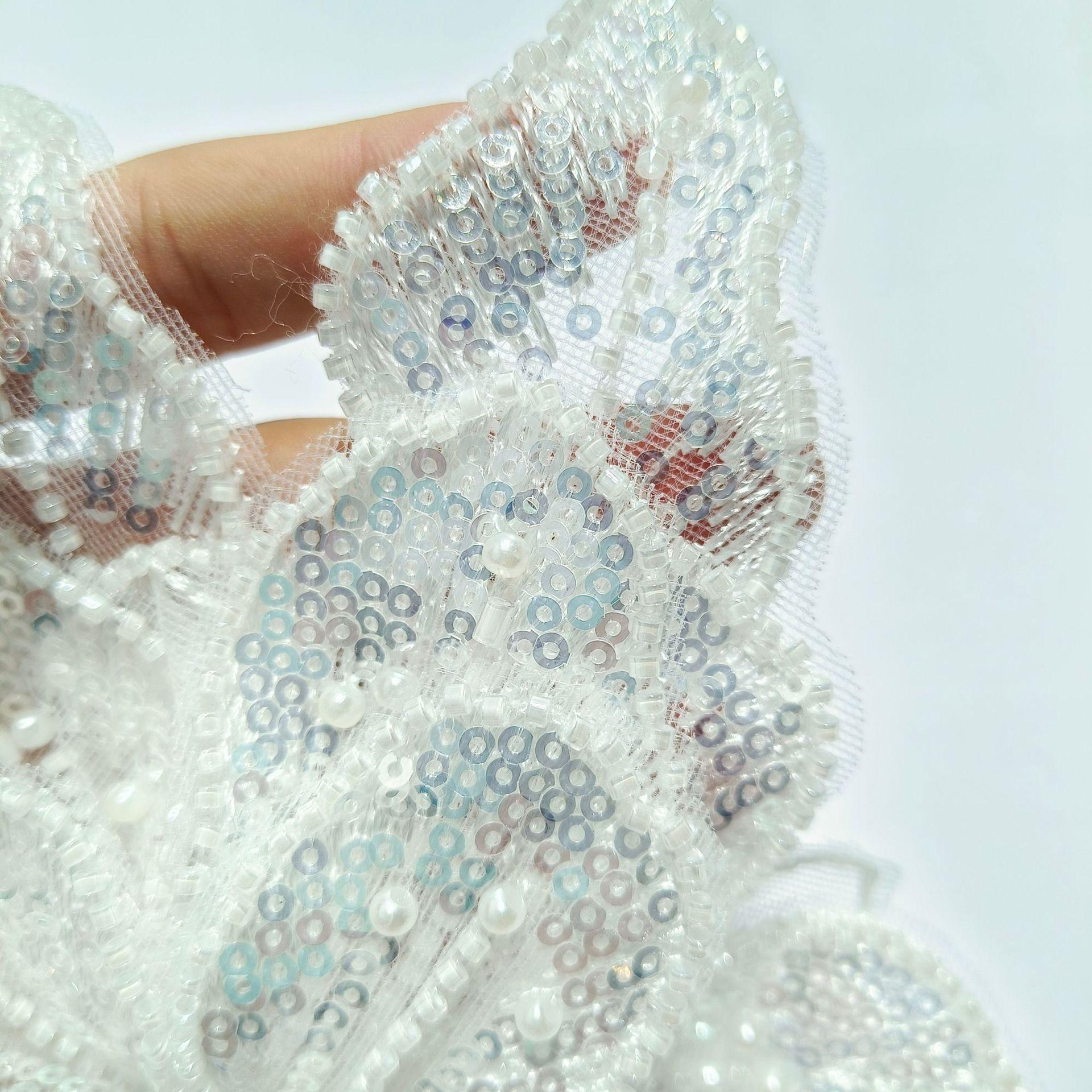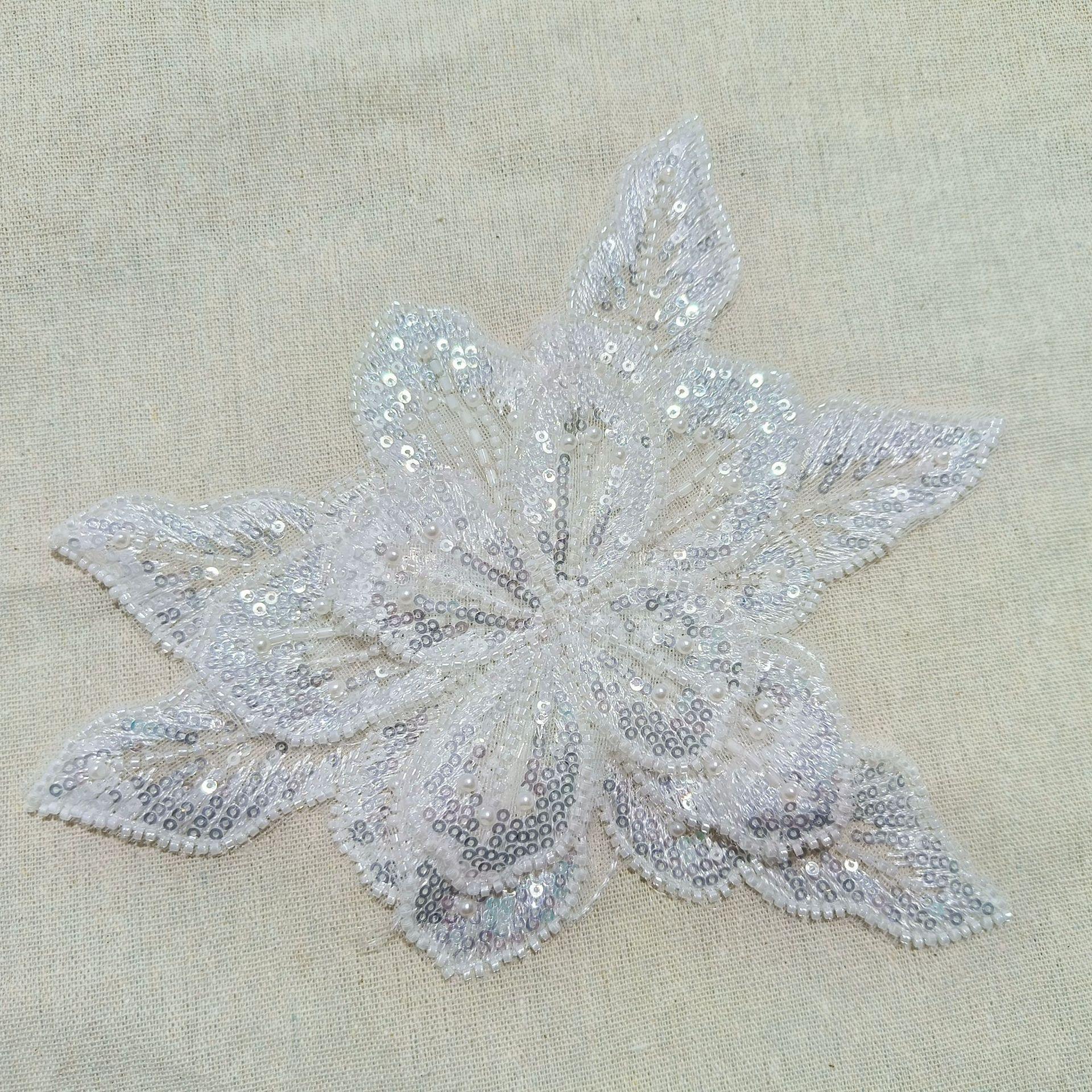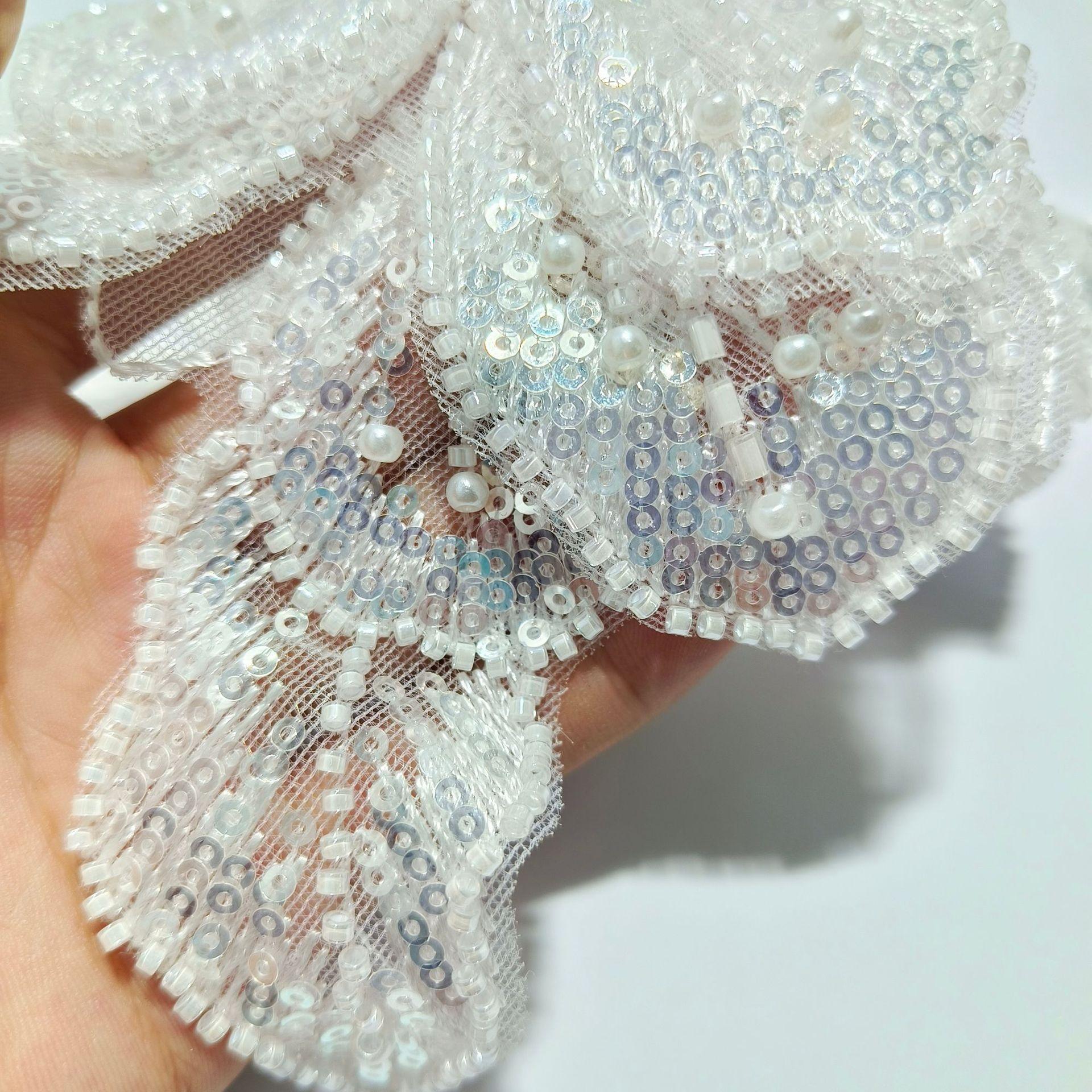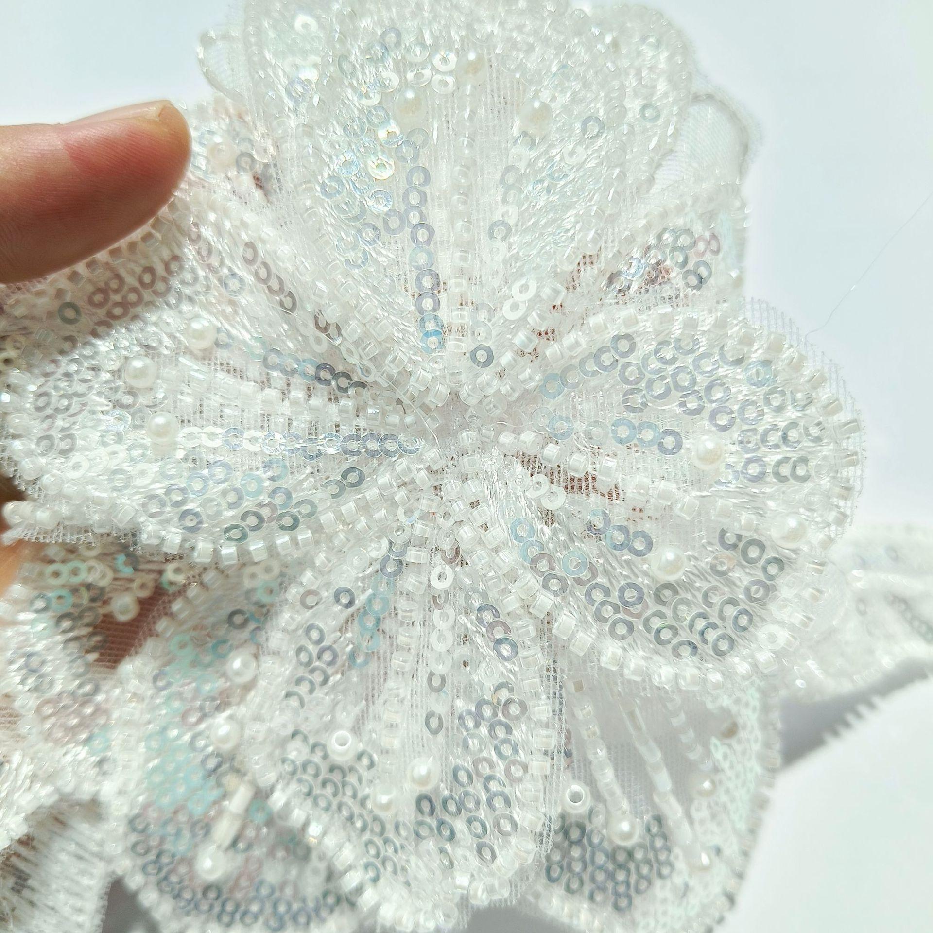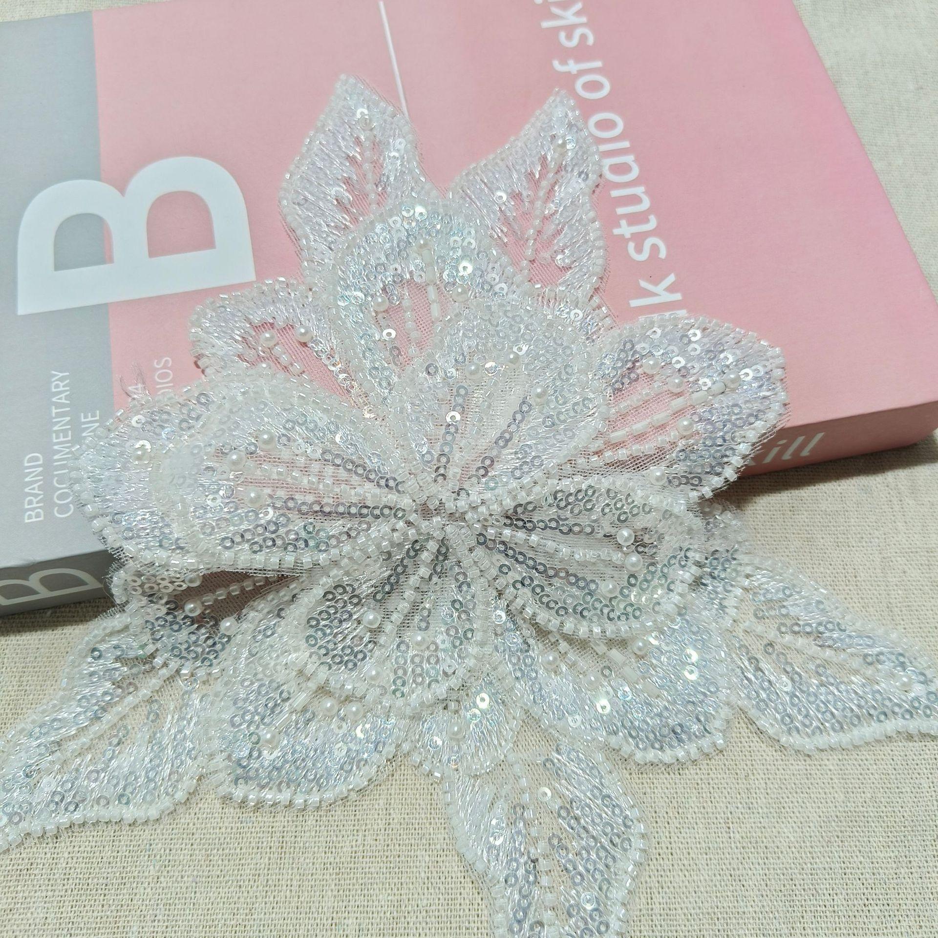 Nuevo parche de ramillete de flores tridimensional con cuentas de lentejuelas multicapa blancas, accesorios para cheongsam, accesorios decorativos al por mayor