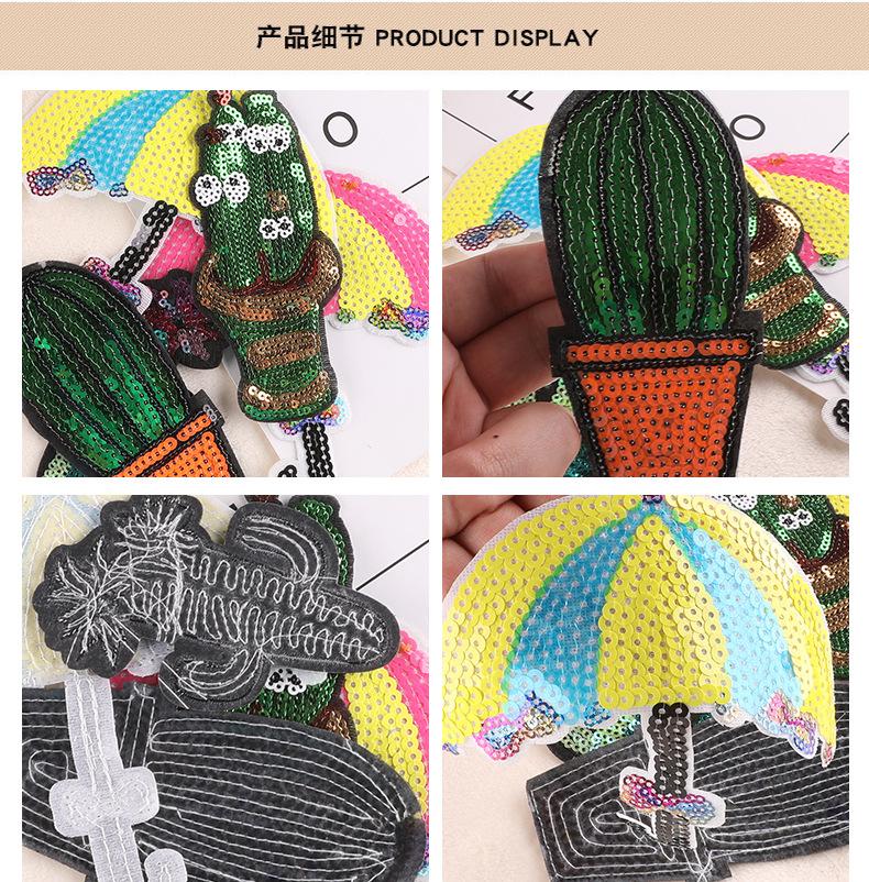 [Nota] Los parches con lentejuelas, cuentas, pedrería, flores de seda, bolas de pelo y bordados con hilo metálico deben plancharse primero por detrás y luego recortarse por delante, una vez fijados firmemente. Esto evitará dañar las lentejuelas u otros accesorios de la parte delantera. Mantenga la ropa (u otros textiles) seca y no rocíe agua sobre los parches de tela ni sobre la ropa con la plancha al plancharlos. Una vez planchado, el parche de tela generalmente se adhiere bien a la ropa (u otros textiles) durante mucho tiempo. Si el parche se desprende después de un tiempo o después del lavado, significa que la temperatura de la plancha es demasiado baja o el tiempo de planchado es demasiado corto. Puede repetir la operación original y planchar el parche de nuevo.