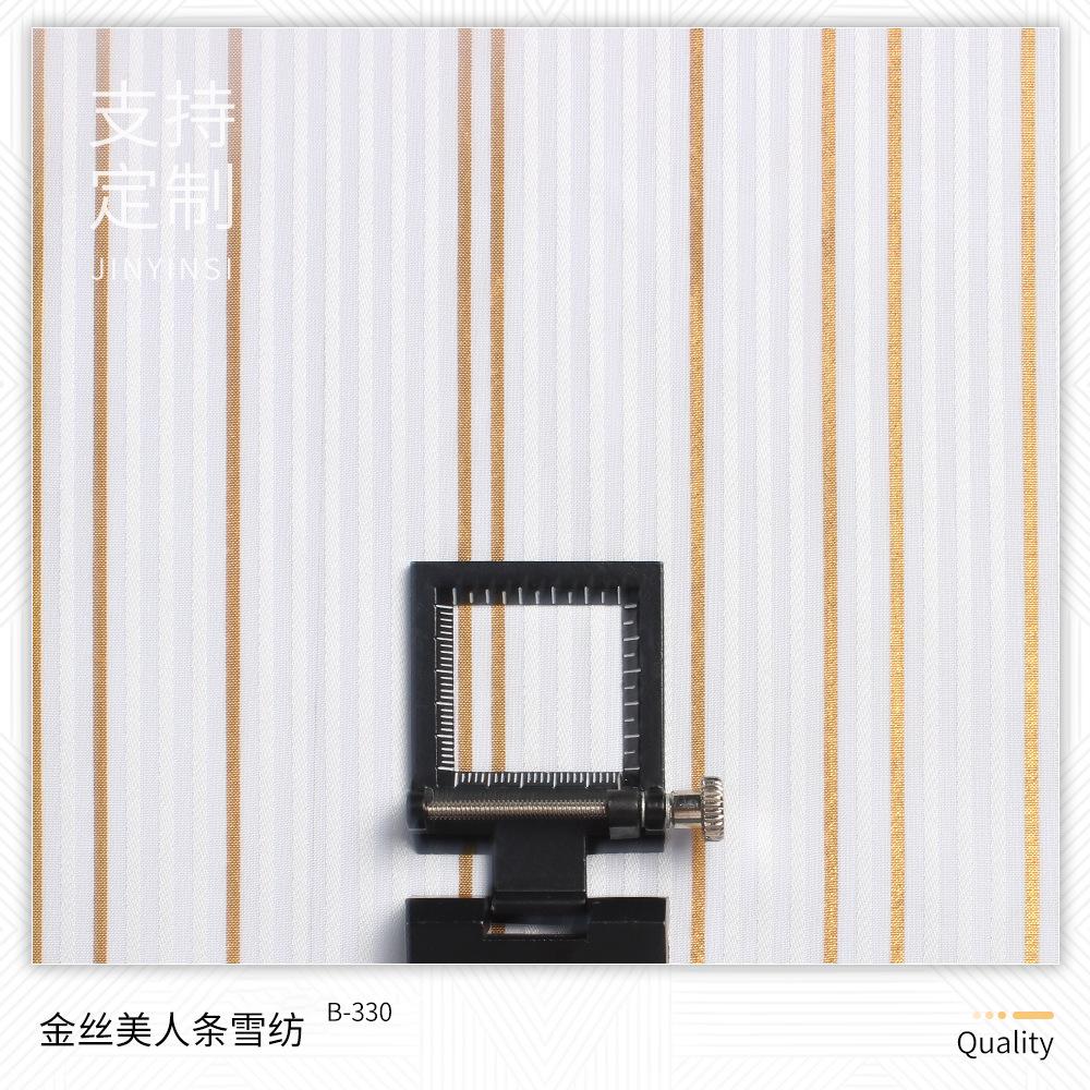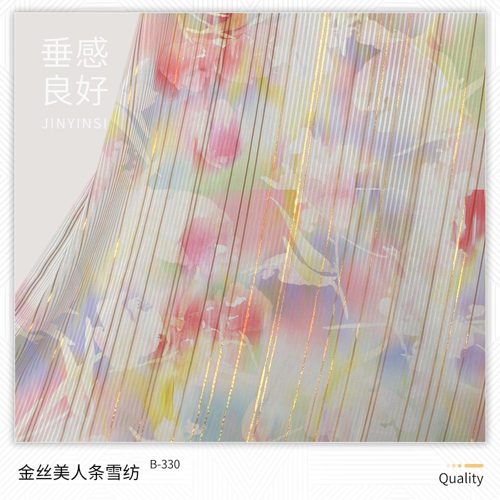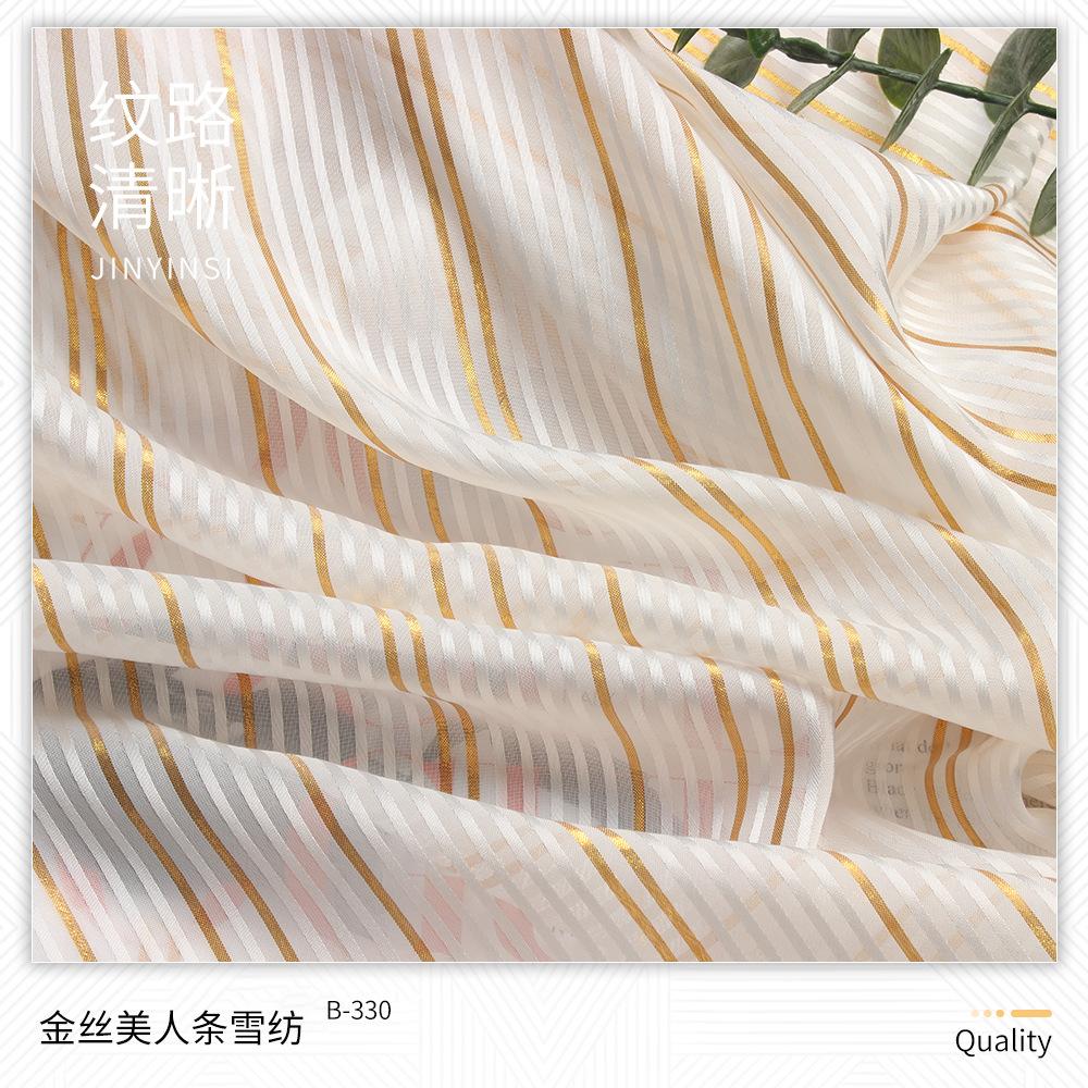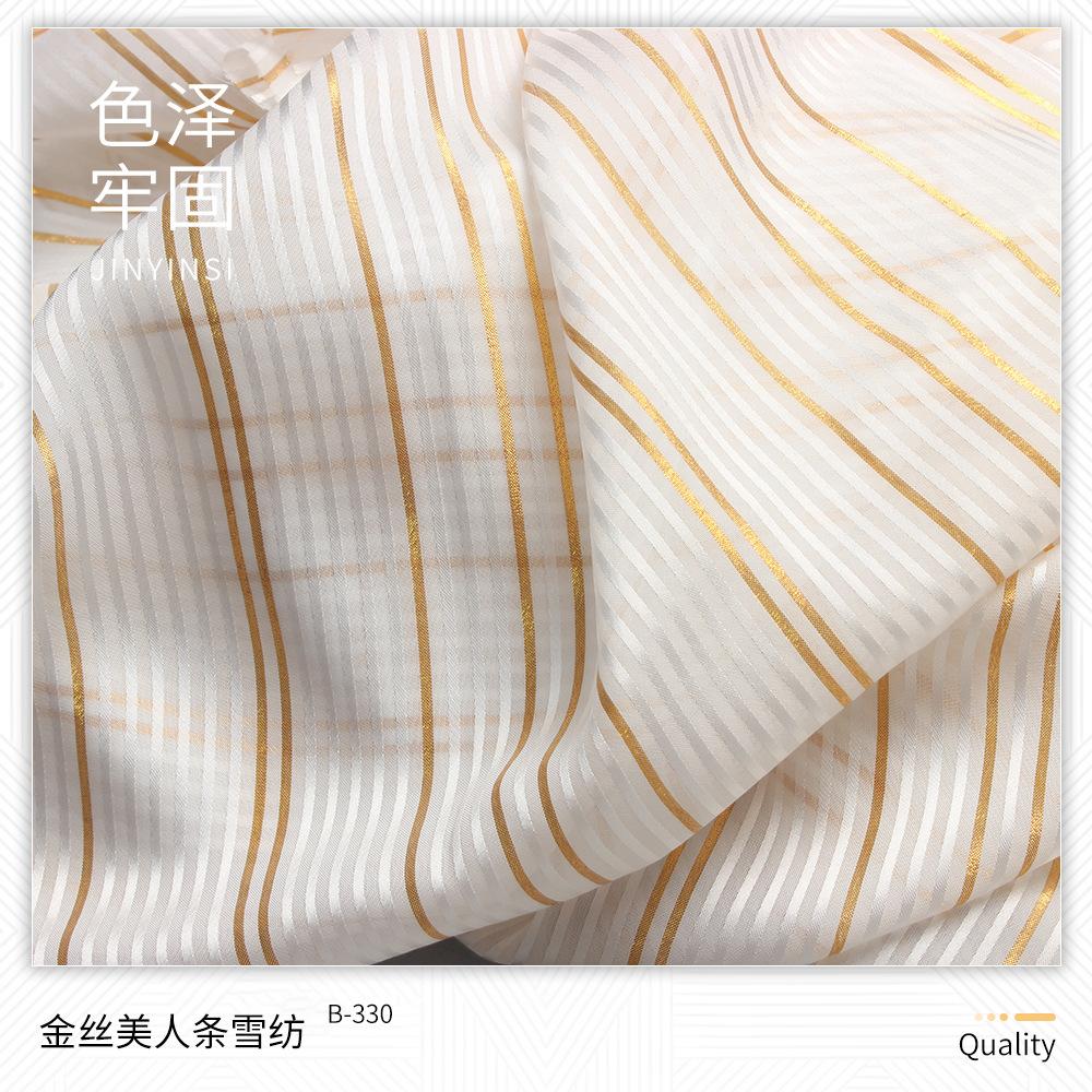 | B-223 | Crepe Shunyu de celosía de seda colorida | B-405 | Crepé de gasa con rayas de belleza plateada | B-528 | Flores de corte largo con alambre de oro y plata CEY | B-712 | Jacquard dorado con lino tejido |