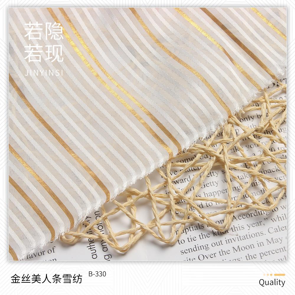 | B-216 | Crepé de gasa con rayas doradas y plateadas | B-335 | 75*75 gasa de seda plateada con rayas de belleza | B-521 | 9 tiras de belleza con cortes de flores doradas de colores | B-705 | Hilo de plata regular con lino tejido |