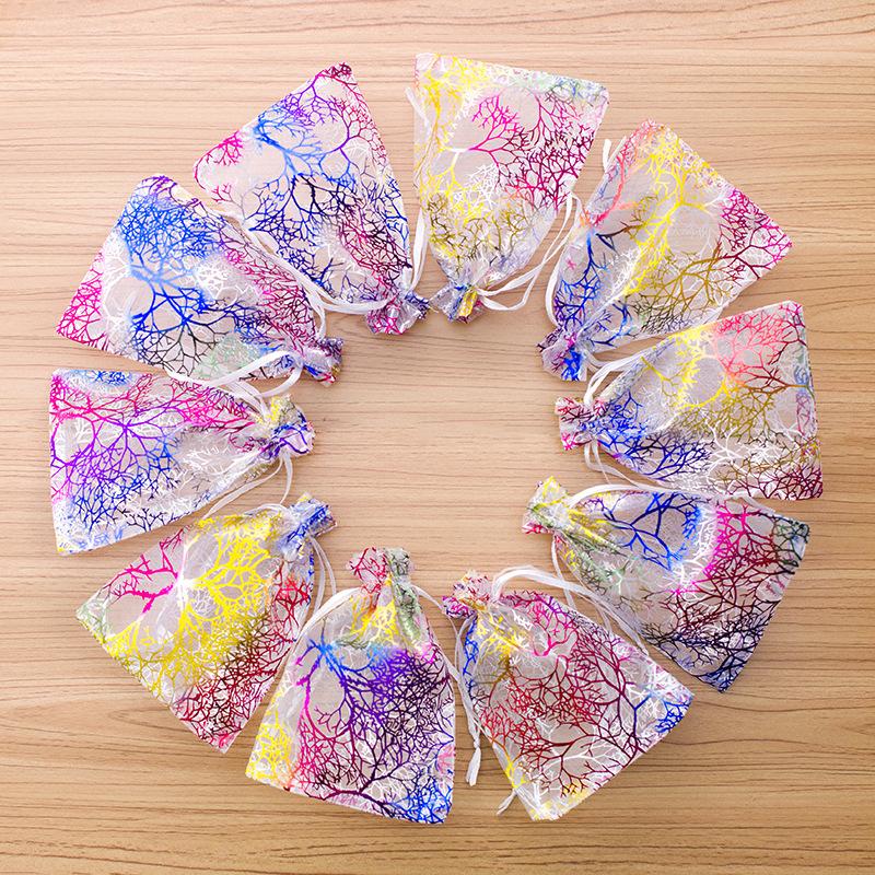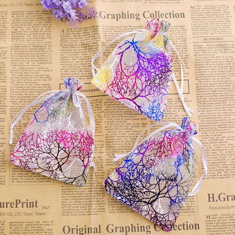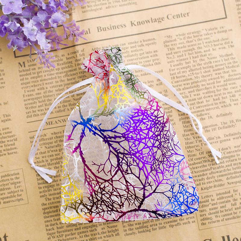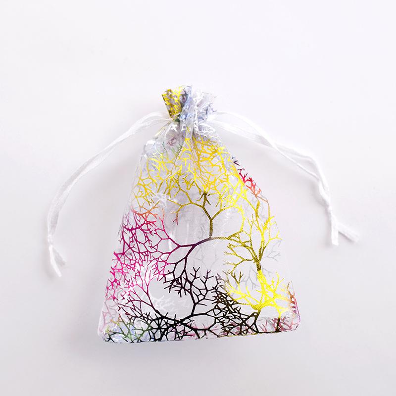 Bolsa de malla con cordón para embalaje navideño, bolsa de organza con estampado en caliente, bolsa para joyas, bolsa para guardar cosméticos con cordón, bolsa para guardar joyas