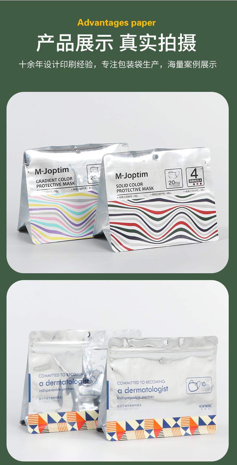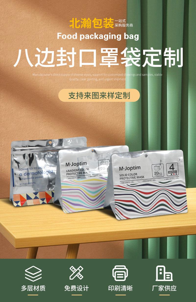 Bolsa de aluminio compuesto sellada por ocho bordes con cremallera sellada, bolsa para empaque de alimentos pintada, autosellable, autoportante, bolsa con máscara de personalidad al por mayor