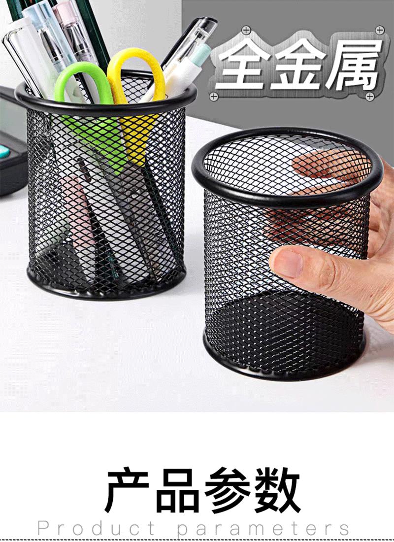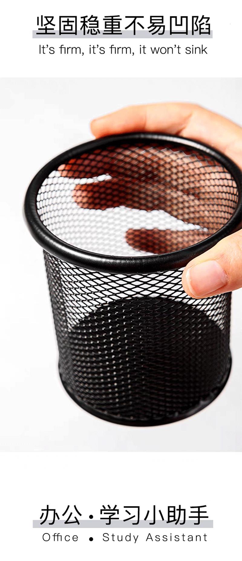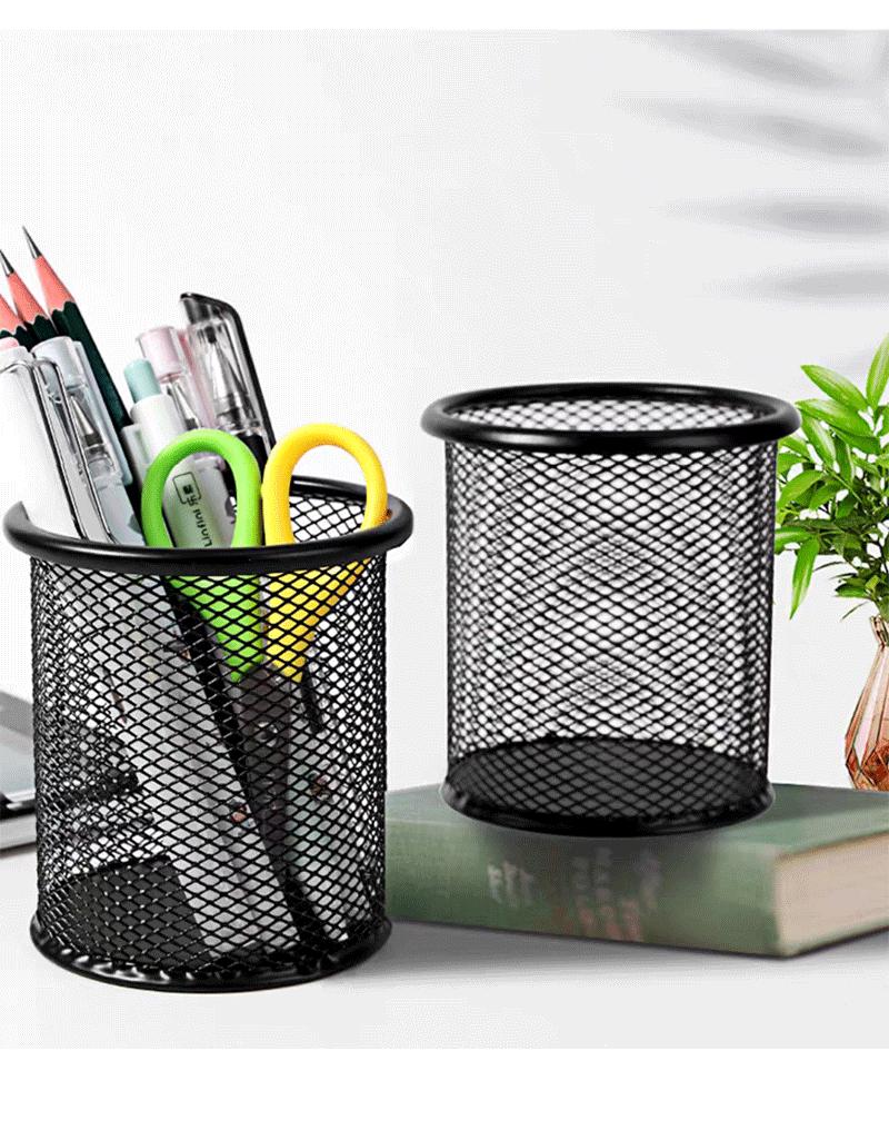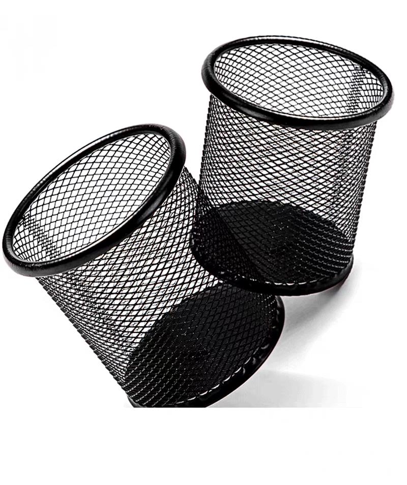 Portalápices de Metal Redondo Negro Hierro Calado Cubo de Almacenamiento de Escritorio Oficina Estudio Multifuncional Estudiante Cubo de Lápices Simple