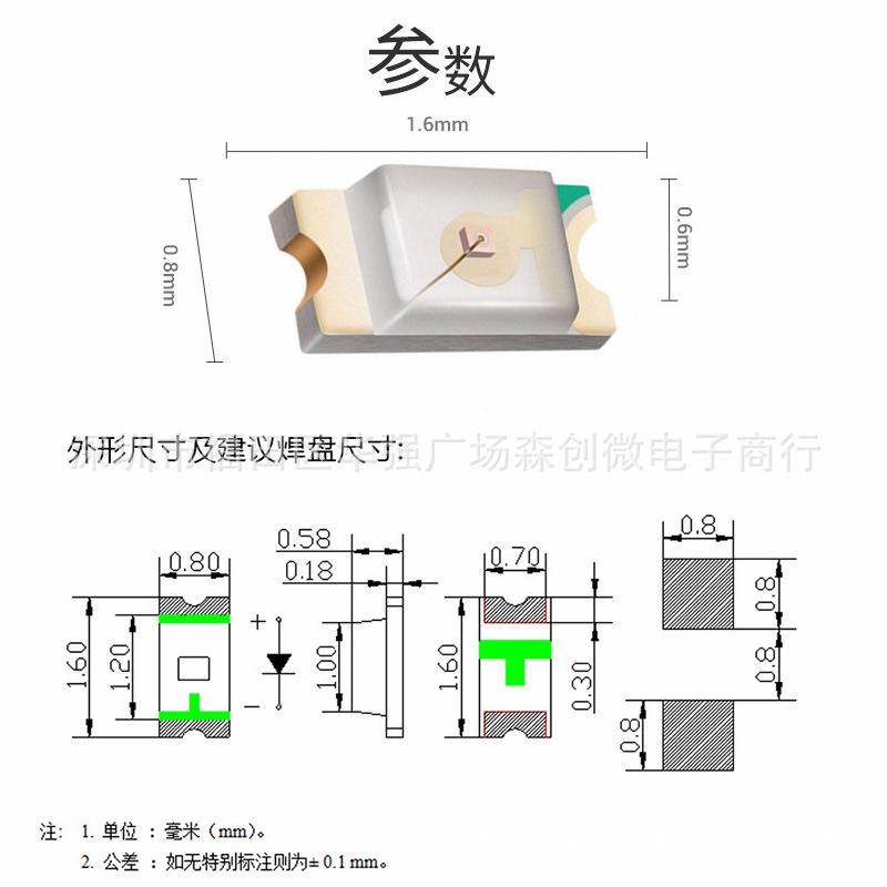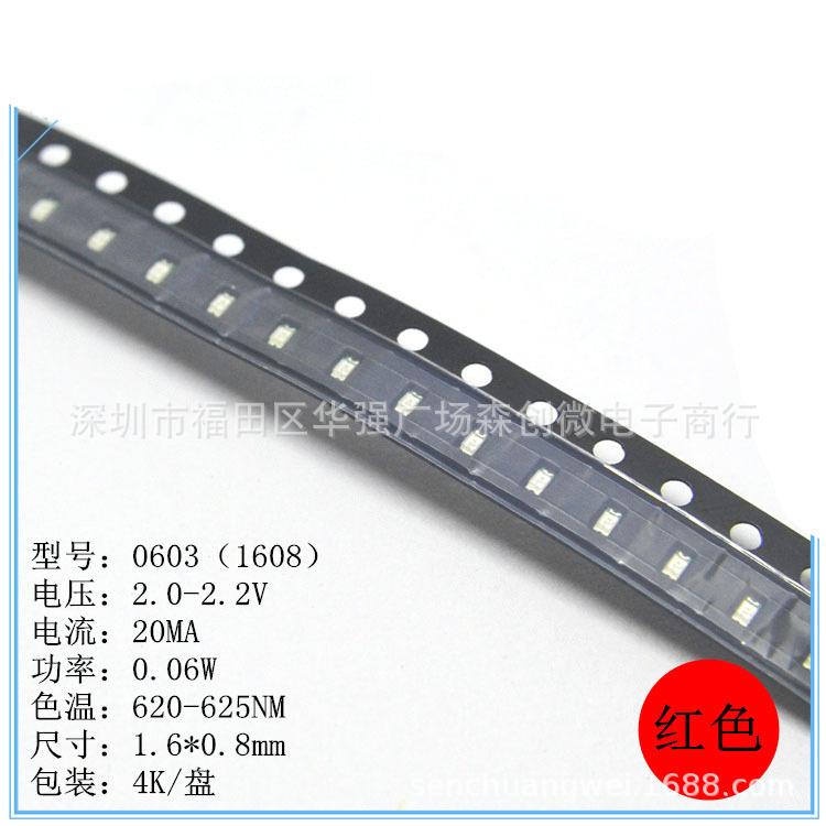 0603 luz roja 1608 lámpara de parche LED de grano de luz roja SMD de grano de lámpara diodo emisor de luz roja