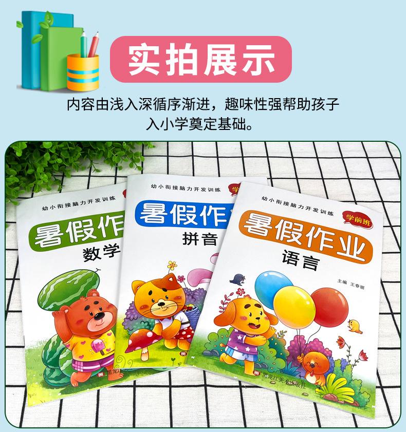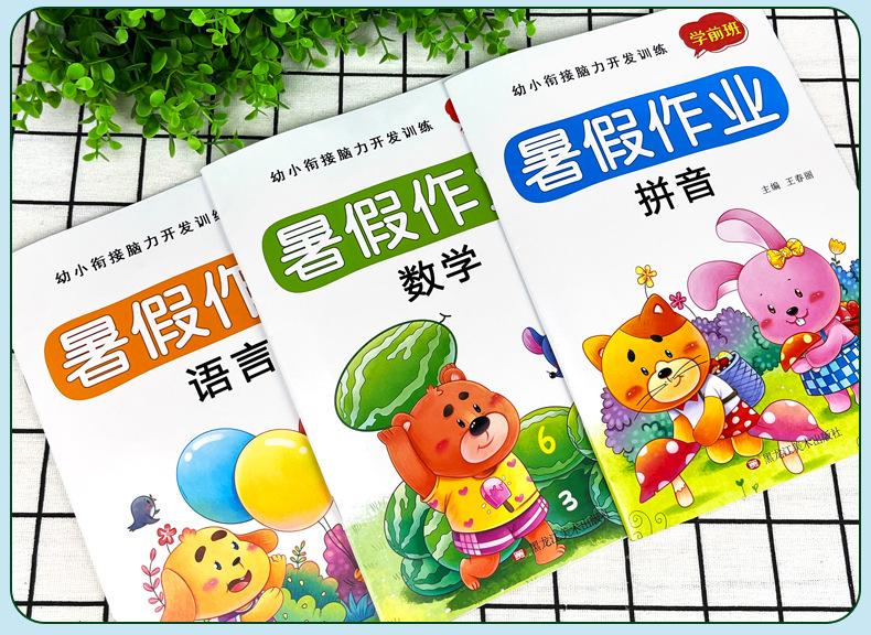 Niños pequeños se conectan con Jardín de Niños Clase Grande Tarea de Vacaciones de Verano Preescolar Pinyin Matemáticas Libro de Texto Chino Libro de Ejercicios