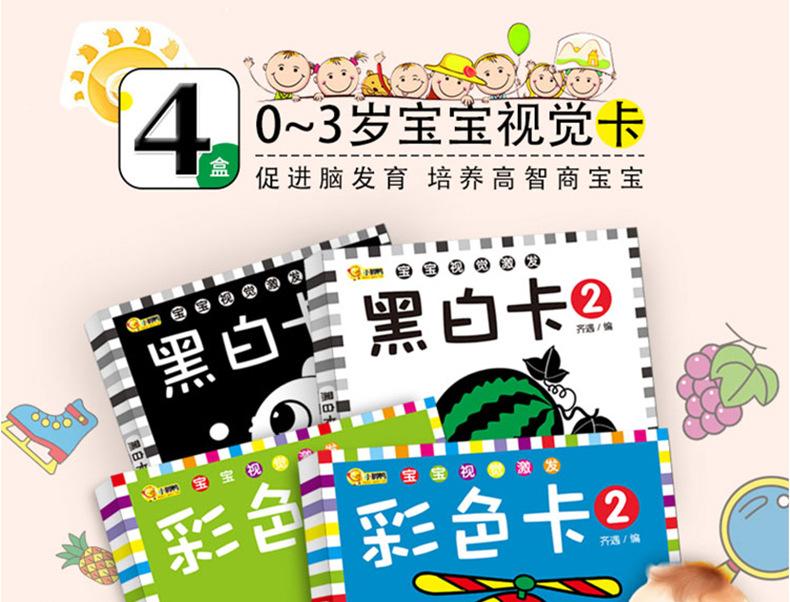Tarjeta de estimulación visual para bebés en blanco y negro/tarjeta a color, 4 libros, educación infantil temprana, desarrollo de la inteligencia, tarjeta educativa.