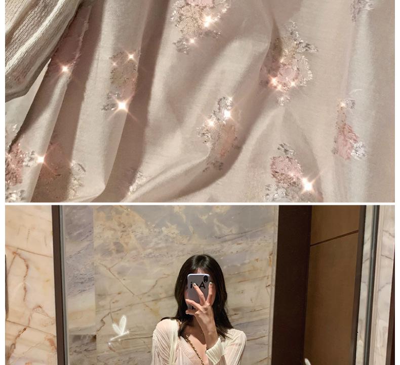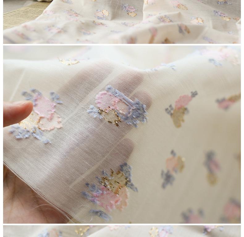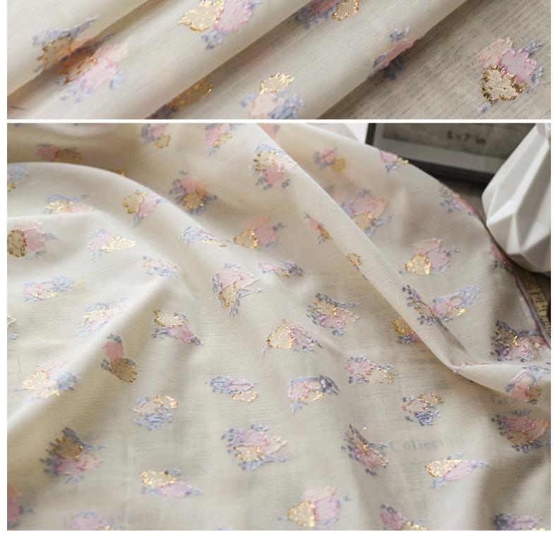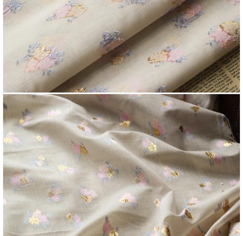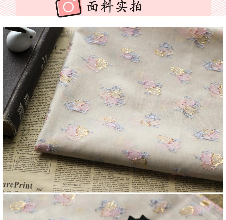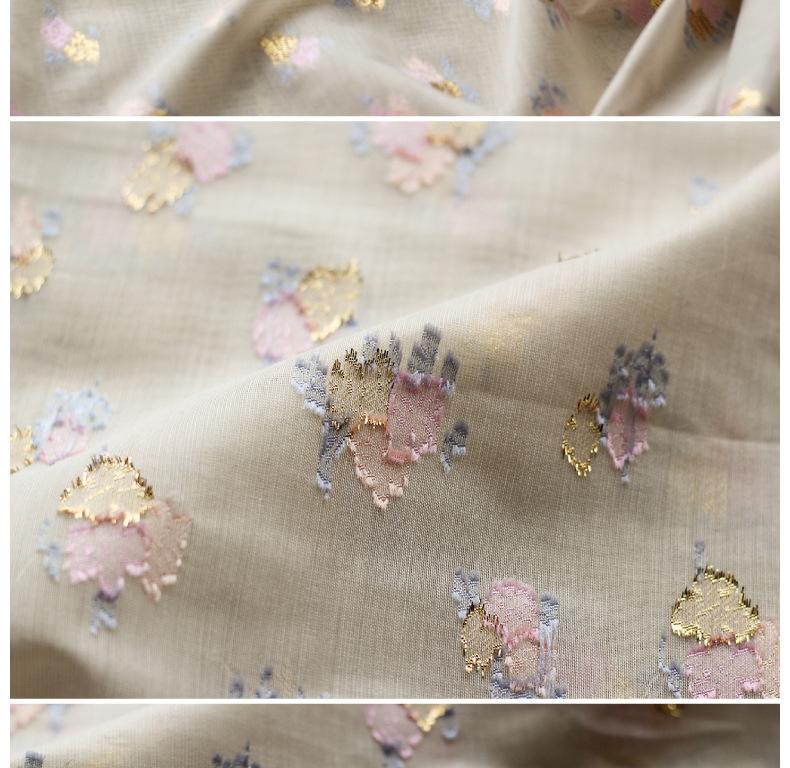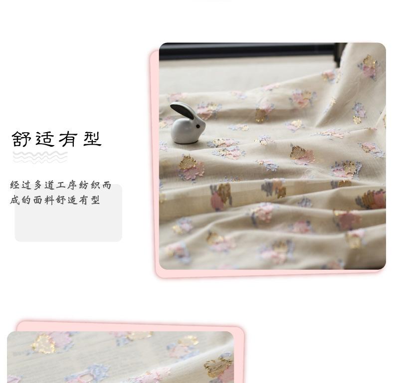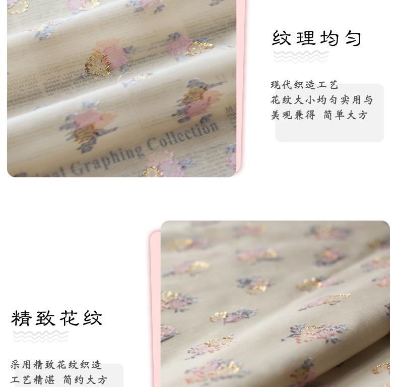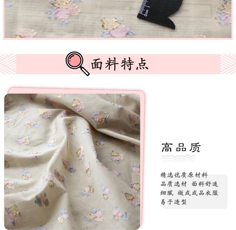 Tejido jacquard de seda dorada con flores, tejido cortado con hilo de algodón y poliéster, tejido semitransparente con hilo jacquard dorado, tejido para camisas de moda para mujer.