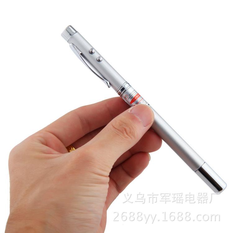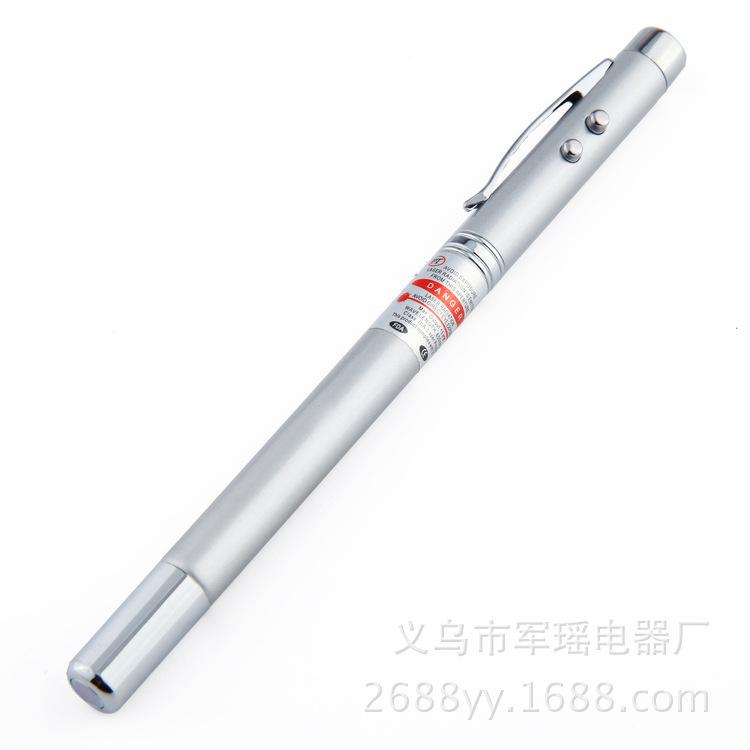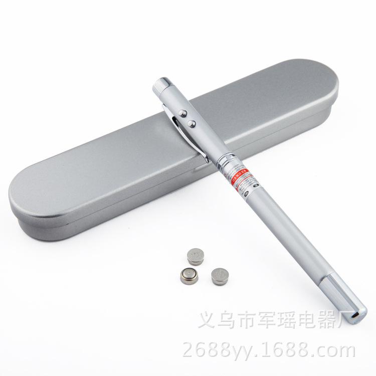 Este puntero de acero inoxidable es un producto cinco en uno con una amplia gama de usos. El láser puede disparar a una distancia de varios cientos de metros y funciona con una pila de botón. Desde fuera, parece un bolígrafo normal, pero no lo es.