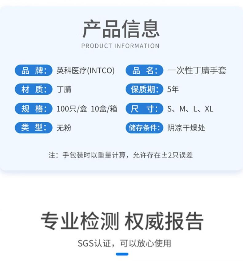 XS Code Yingke Blue Pure Nitrile Gloves (High Elastic Double Certification), S Code Yingke Blue Pure Nitrile G...