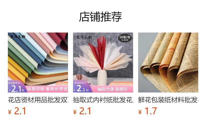Papel de piedra hecho a mano para envolver flores, papel con textura de doble capa, papel con textura arrugada, material para flores de floristería, papel para envolver flores. ¥3.19 Compre ya | Tela con pequeñas fragancias, materiales para empaquetar flores al por mayor, papel para empaquetar ramos integrados, materiales para floristerías, suministros, láminas moldeadoras ¥4.50 Compre ya | Materiales de papel para envolver flores al por mayor, papel para envolver ramos de flores, papel kraft retro para envolver flores, girasol, periódico inglés ¥1.60 Compre ya | Fabricantes al por mayor de cintas de hilo de color sólido, lazos para envolver flores, cintas de hilo overlock, cintas para floristerías, embalajes de flores, cintas de hilo de cola de pez ¥1.47 Compre ya | ||