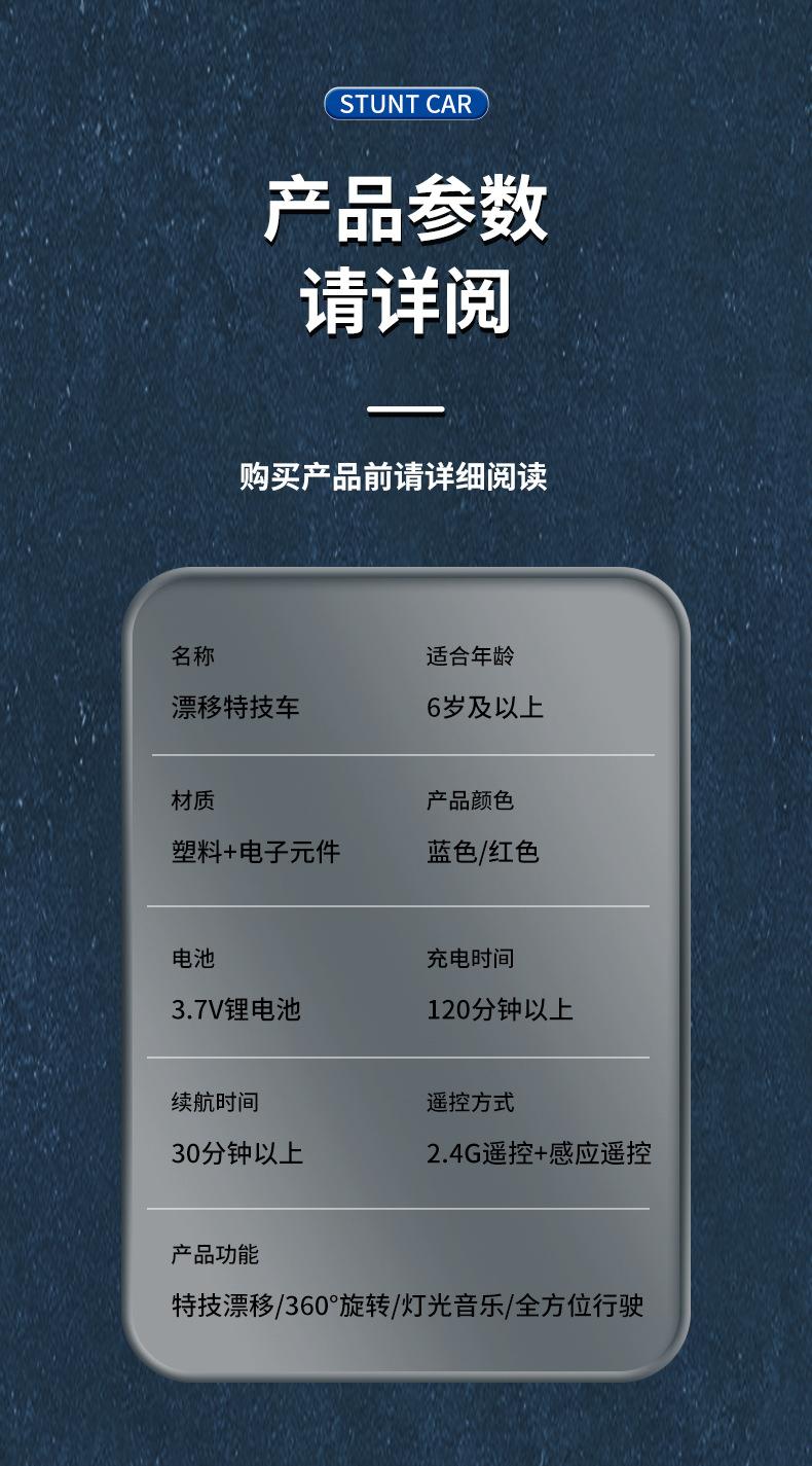 601 extended double-sided stunt car (blue) single remote control, 601 extended double-sided stunt car (red) si...
