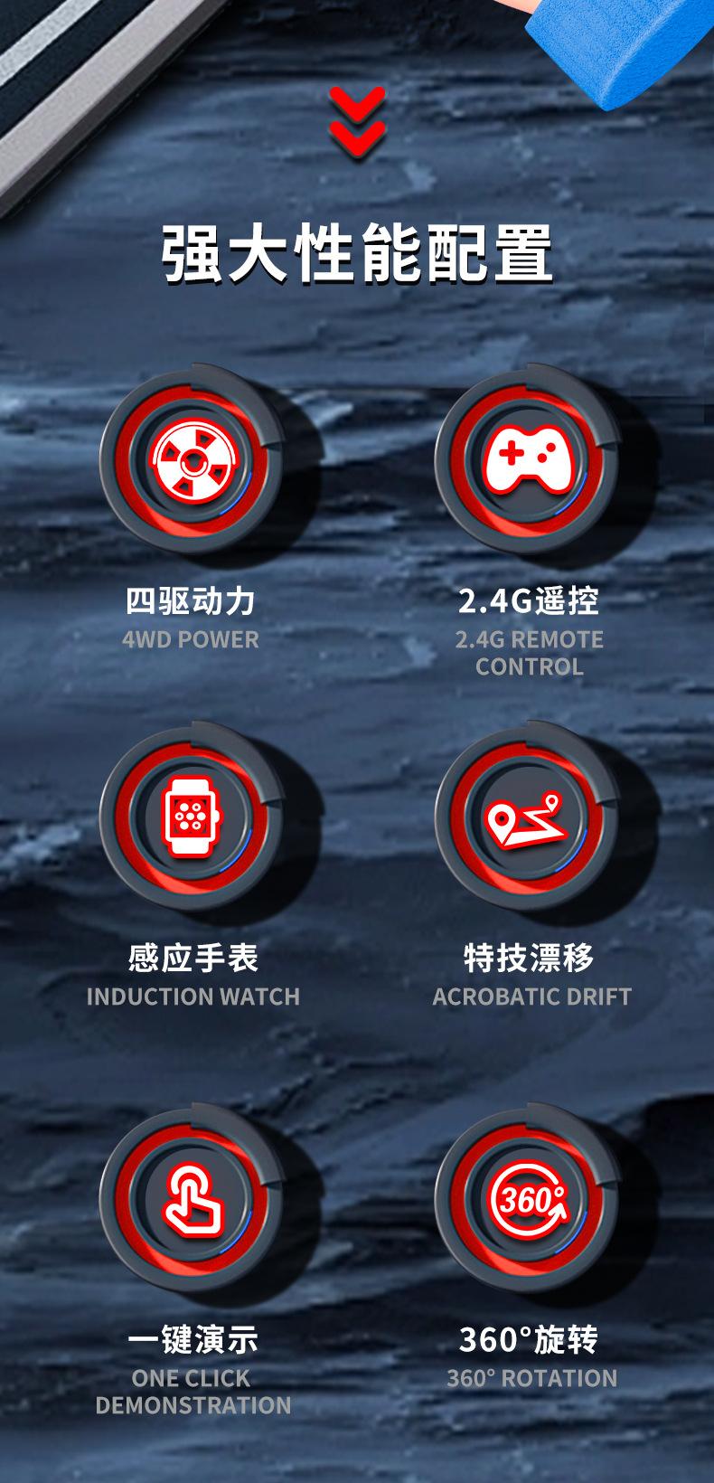 601 extended double-sided stunt car (blue) handle + watch remote control