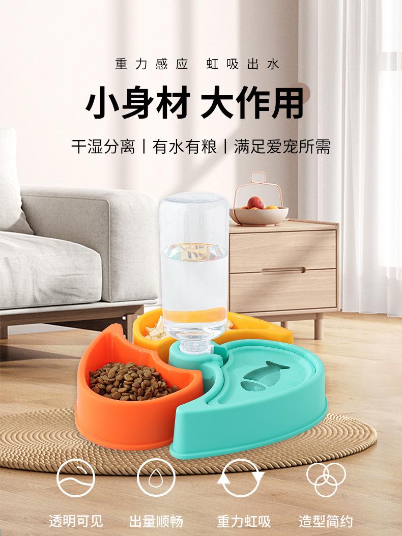Cuenco para gatos, cuenco para perros, comedero automático con separación de líquidos y alimentos secos, bebedero para gatos y perros, suministros para mascotas para el pelo.