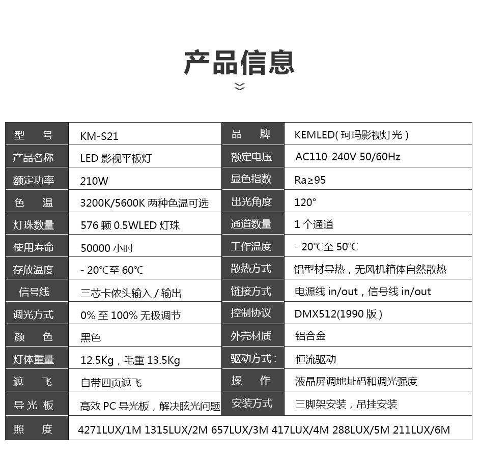 Koma Km-S21 Power 210W Luz de Panel de Estudio Luz de Panel de Cine y Televisión Luz de Superficie Luz Suave Luz Suave Led