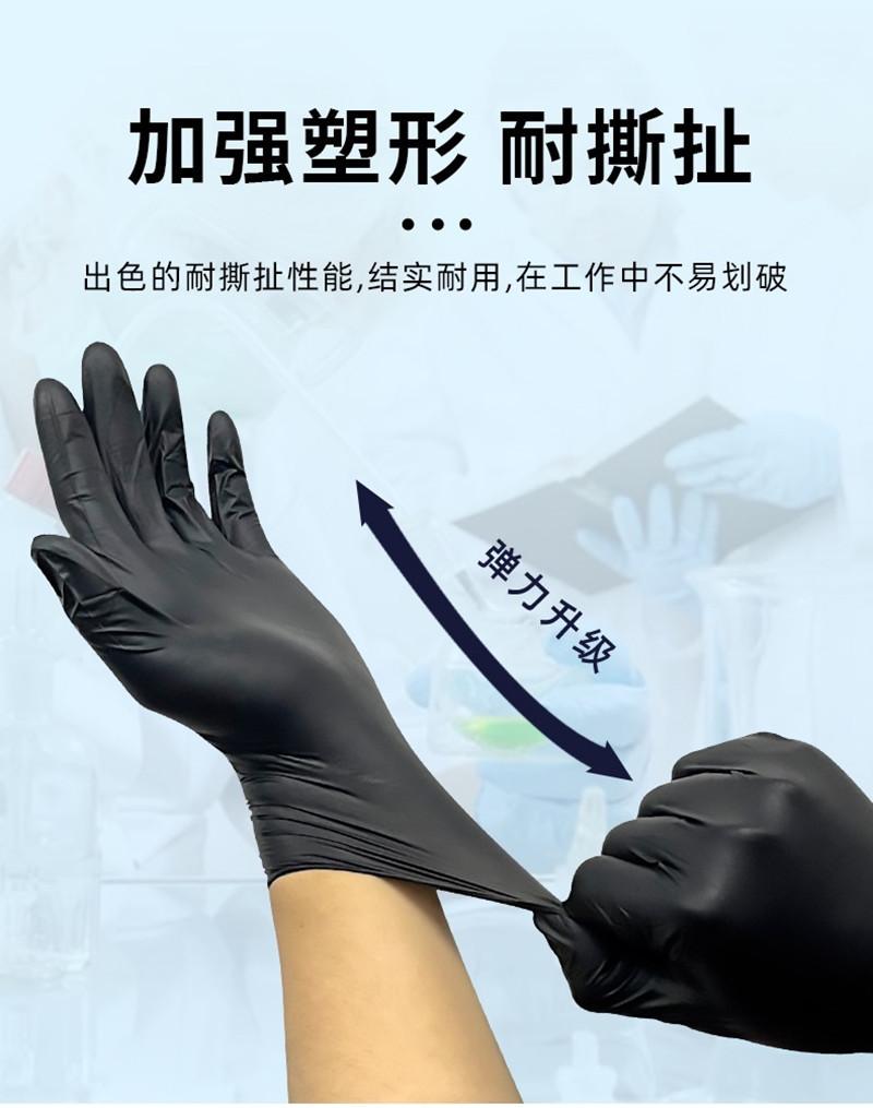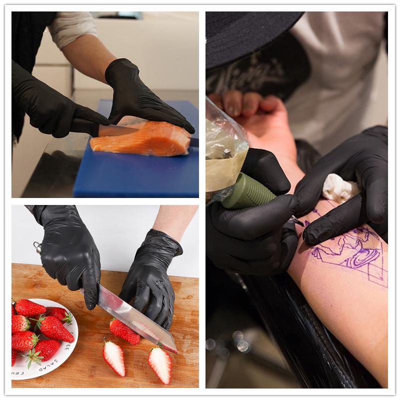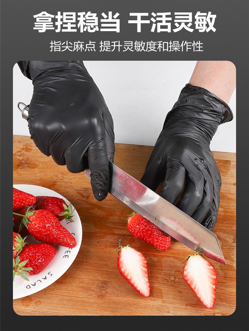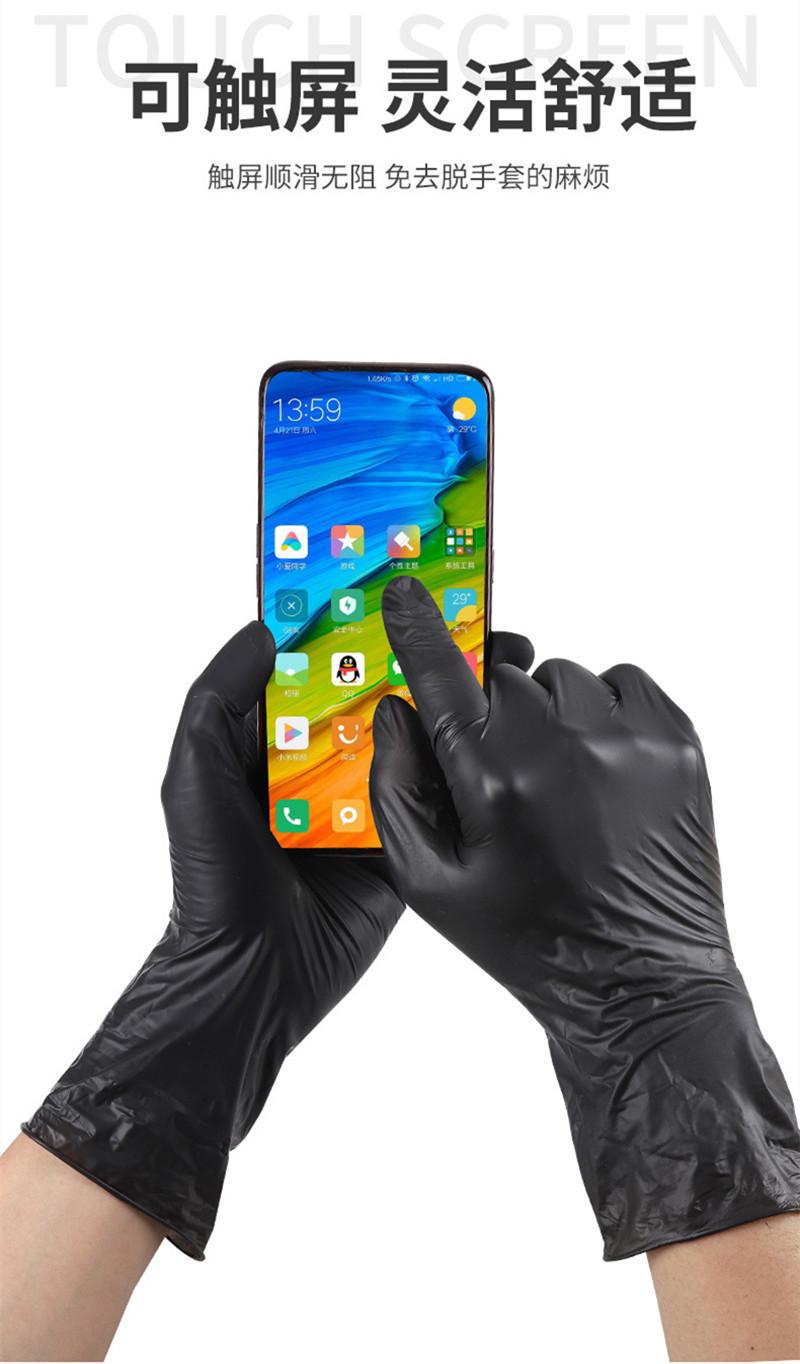 Guantes Protectores Desechables de PVC Negro de Caucho Ding Qing de Alta Elasticidad Engrosados para Limpieza Doméstica de Grado Alimenticio de Nitrilo Sintético