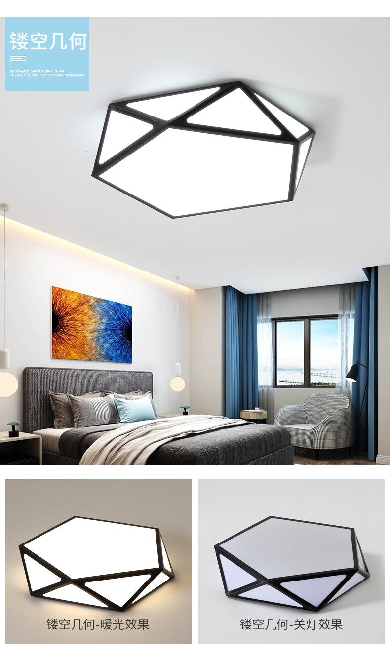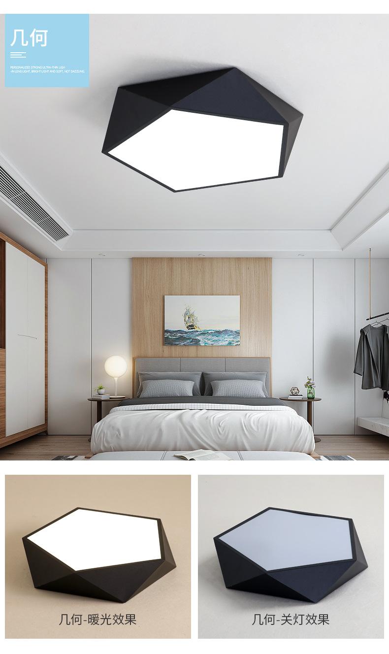 Lámpara de techo LED negra, creativa, geométrica, para dormitorio, sala de estar, lámpara moderna y sencilla con personalidad para estudio, balcón y pasillo.