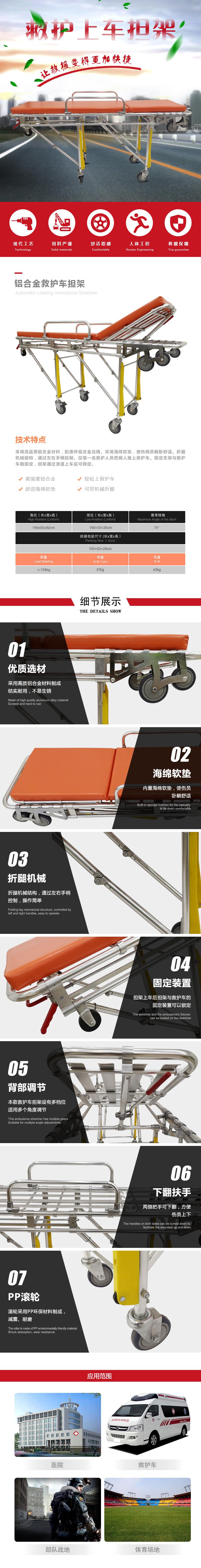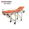 Camilla de ambulancia de aleación de aluminio con respaldo ajustable, venta al por mayor, camilla de coche con control de manija, seis ruedas con dispositivo de fijación