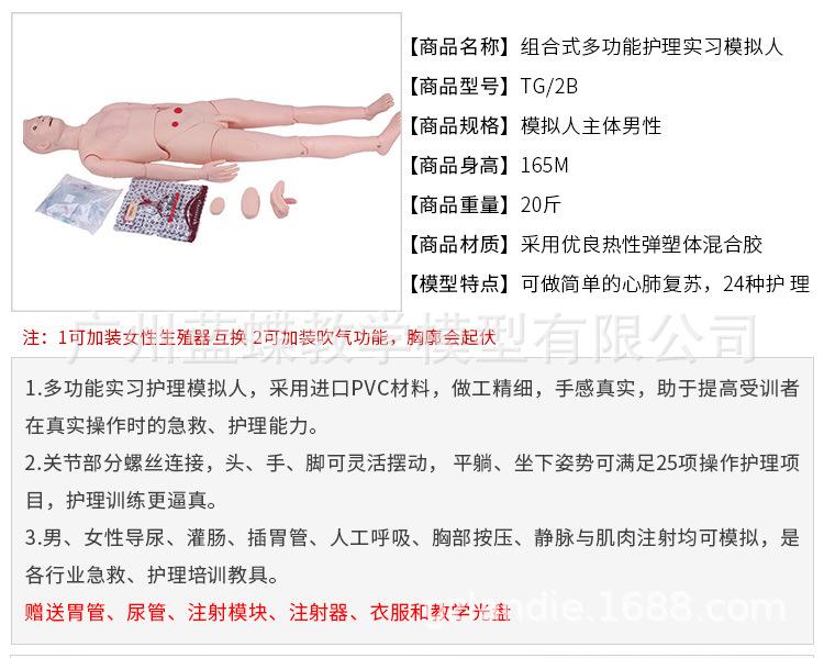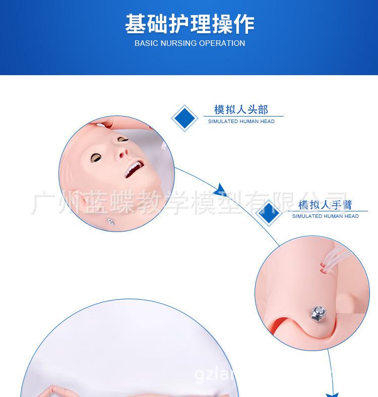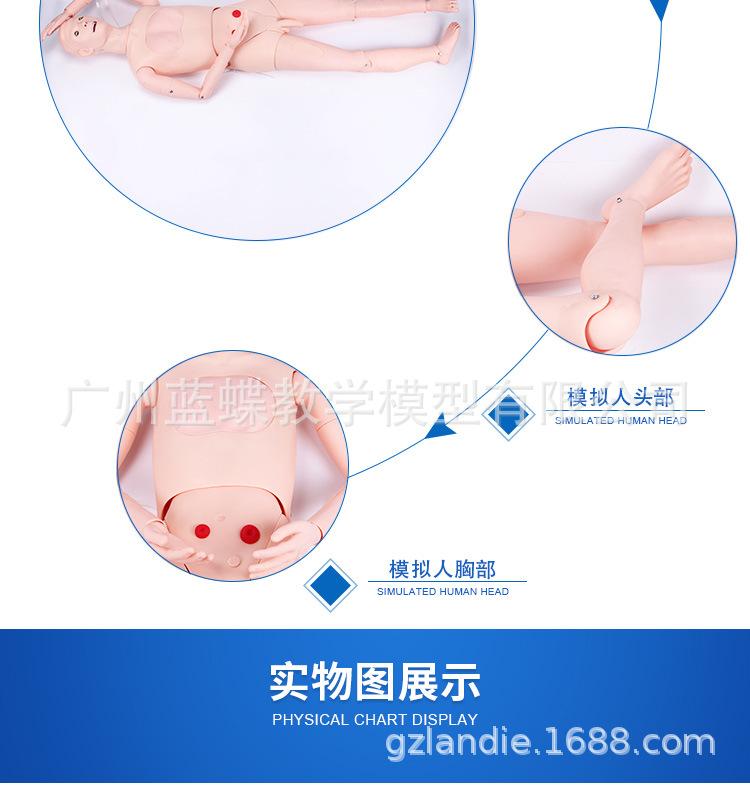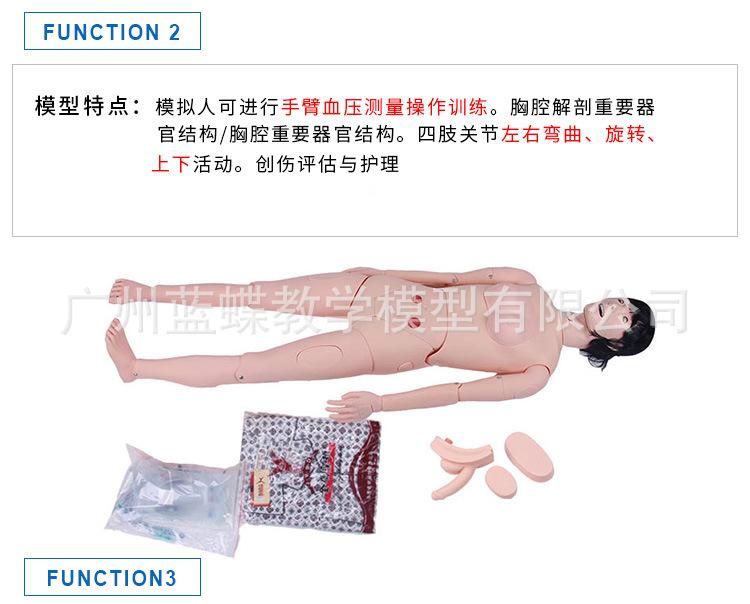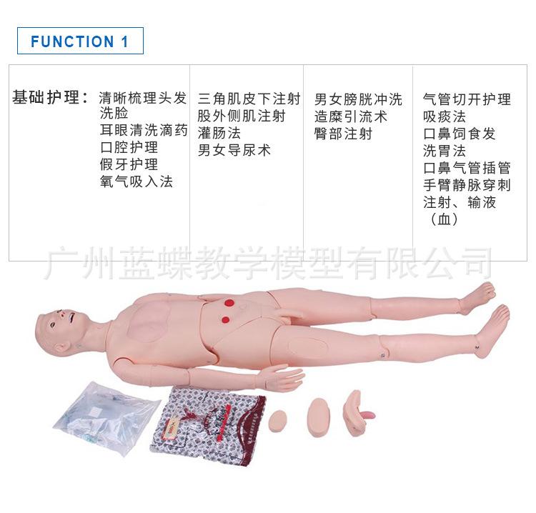 El modelo tiene todas las funciones de los cuidados holísticos de enfermería y también se puede desmontar y montar por piezas para la enseñanza y la formación.