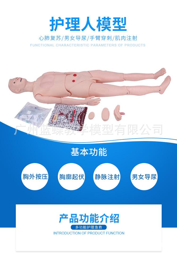 Este modelo es adecuado para escuelas de salud, enfermería y medicina de todos los niveles para la enseñanza de enfermería. Todas las articulaciones se pueden mover y rotar, la cintura se puede flexionar y todas las partes se pueden desmontar. Este modelo está hecho completamente de plástico blando y semiduro, que es duradero y fácil de usar.