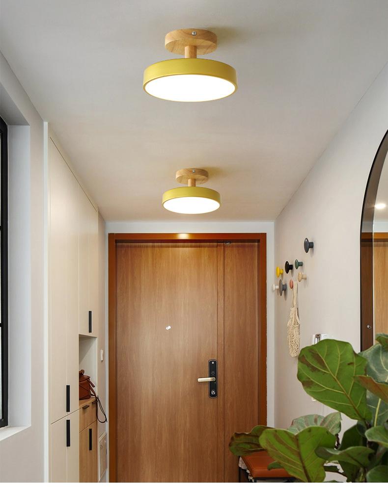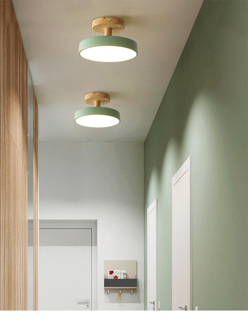 Lámpara de techo de madera maciza estilo macarrón nórdico, lámpara de pasillo, entrada, porche, moderna, sencilla y creativa, para balcón