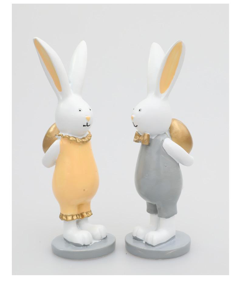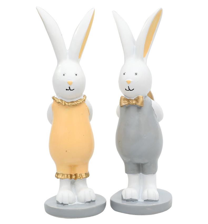 Suministro transfronterizo al por mayor de nuevo par de decoraciones de Pascua con forma de conejito de Pascua y huevo dorado