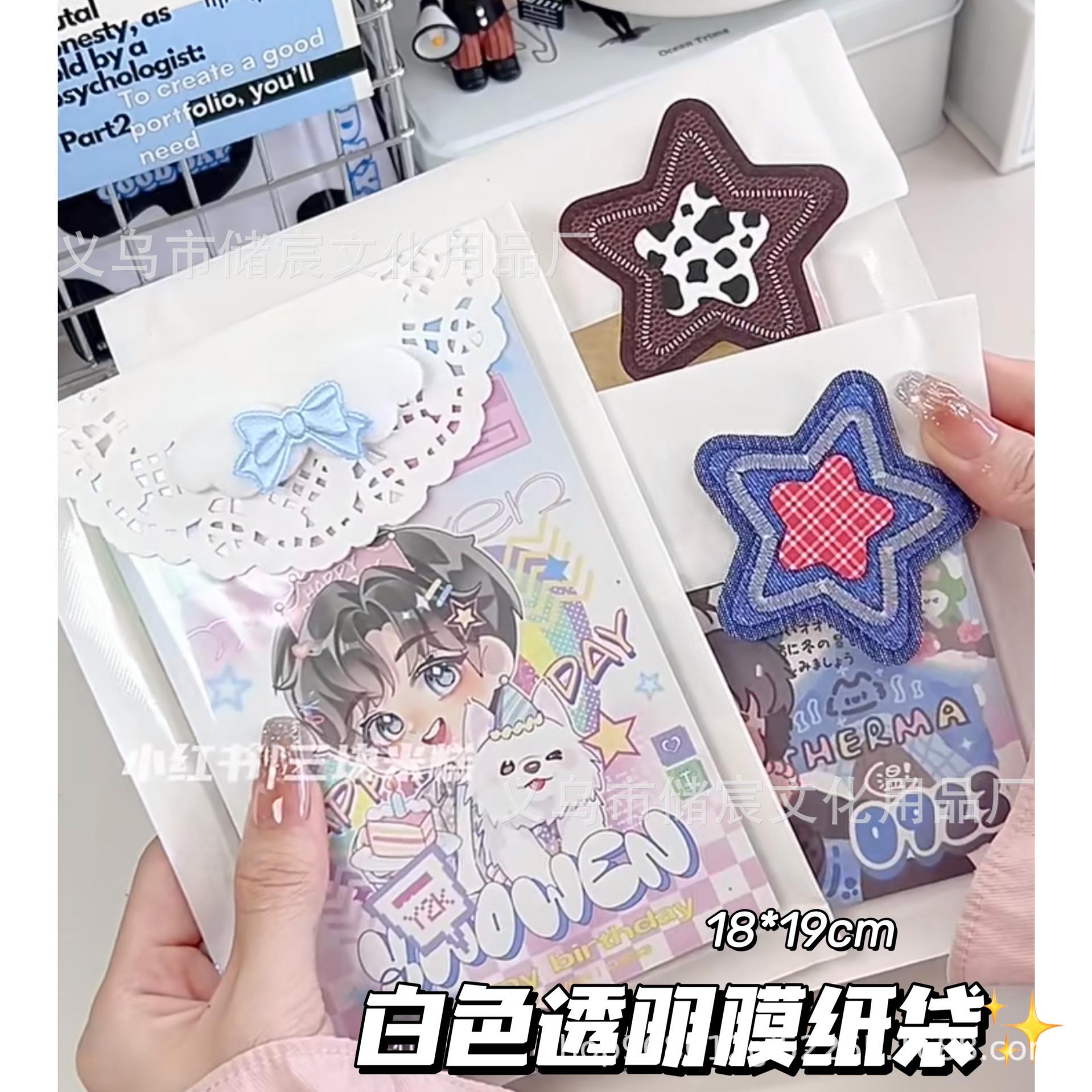 Bolsa de papel con película transparente blanca estilo ins, material de embalaje que combina con todo, bolsa de regalo con cuenta de tableta Star