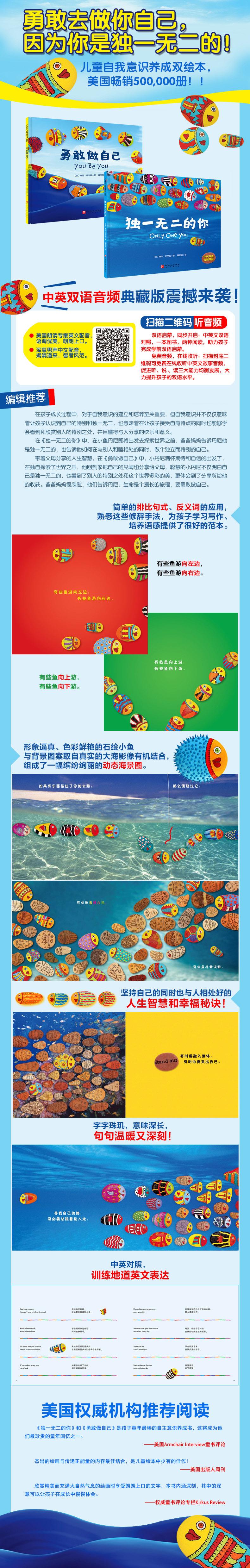 ★Un libro ilustrado americano clásico sobre autoconciencia y autodeterminación, que ha vendido más de 500,000 copias en los Estados Unidos. ¡La edición de audio en chino e inglés llegará pronto! En el proceso de crecimiento de los niños, es muy importante establecer y cultivar la autoconciencia, pero la autoconciencia no solo significa que los niños pueden reconocer su propia especialidad y singularidad, sino también significa que mientras los niños aceptan sus propias características, también pueden aprender a ver y apreciar la especialidad de los demás, y comprender la alegría y el significado de compartir con otros. En "Único Tú", antes de que Danny el Pez esté a punto de partir para explorar el mundo, sus padres y otros...
