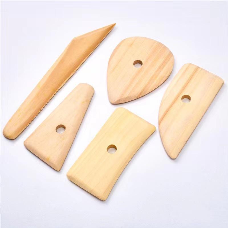 Juego de 5 piezas de herramientas de cerámica transfronterizas Cuchillo esqueleto de arcilla blanda de madera Recorte de arcilla Cuchillo para tallar DIY hecho a mano Venta al por mayor