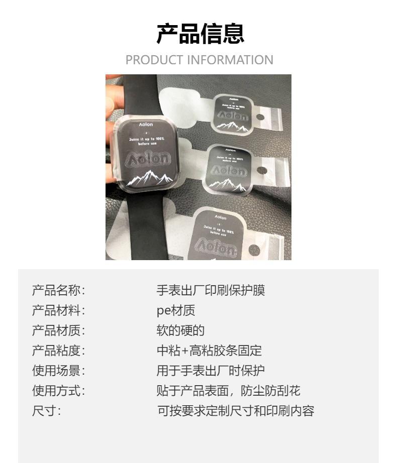 Película protectora de paquete completo para pulsera de reloj, uso en fábrica, antes de envolverla, se puede imprimir con gráficos en color, superficie mate alta