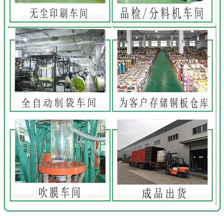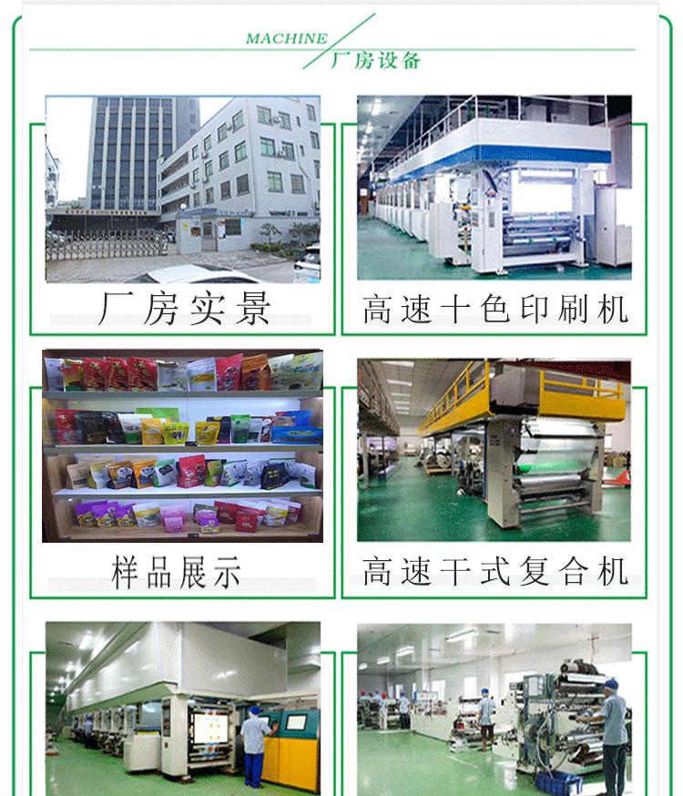 Materiales de embalaje Dongguan Pinnuosheng Co., Ltd.Fundada en la ciudad de Dalingshan, Dongguan, en 2011, nuestra línea de producción actual cuenta con ocho máquinas de soplado de película, 36 cortadoras de bolsas, cinco impresoras, dos cortadoras longitudinales, una cortadora longitudinal y una máquina de compuestos. Además, contamos con seis troqueladoras y otras máquinas de producción independientes de película retráctil, bolsas de plástico, película compuesta, película BOPP, película original y rollo madre. La calidad de los productos está totalmente controlada por nosotros, incluyendo los departamentos de soplado de película, corte de bolsas, corte longitudinal, compuesto, manual, impresión y troquelado. Hemos implementado procesos de sistema eficientes para garantizar la calidad y, al mismo tiempo, controlar los costos. Producción profesional.Bolsa de aluminio、Bolsa aluminizada、 Bolsas de aluminio recubiertas con láser、Bolsa con gancho, bolsa compuesta degradable, bolsa vertical tridimensional, bolsa de vacío pe+pet, bolsa de vacío pa+pe, bolsa cpp compuesta opp, bolsa esmerilada cpp compuesta opp, bolsa de embalaje de ropa interior/bolsa de ropa interior, bolsa de camiseta/bolsa de ropa interior, bolsas de embalaje de accesorios de hardware, bolsas de embalaje de aromaterapia, bolsas de sellado medio/bolsas de plástico, bolsas de ungüento/bolsas con cierre, bolsas de plástico con sellado de tres lados, bolsas de bocadillos/bolsas de embalaje de nuez de betel, bolsas de pico compuestas, bolsas de alimentos, etc., producción personalizada profesionalmente, siempre que tenga necesidades, tenemos una solución, ¡bienvenido a llamar o Ali para consulta!