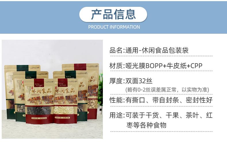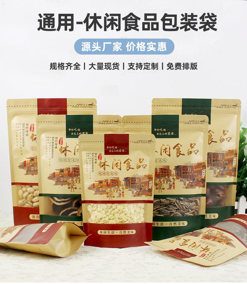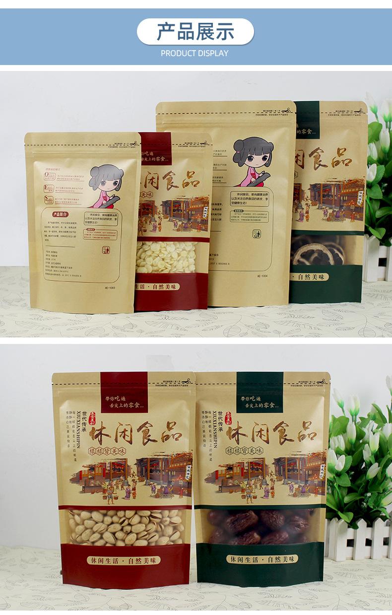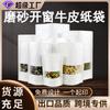 Bolsa de papel kraft esmerilado con autosellado y ventana abierta, bolsa de papel kraft para frutos secos, bolsa de envasado de alimentos para ocio, bolsa sellada y autoportante.