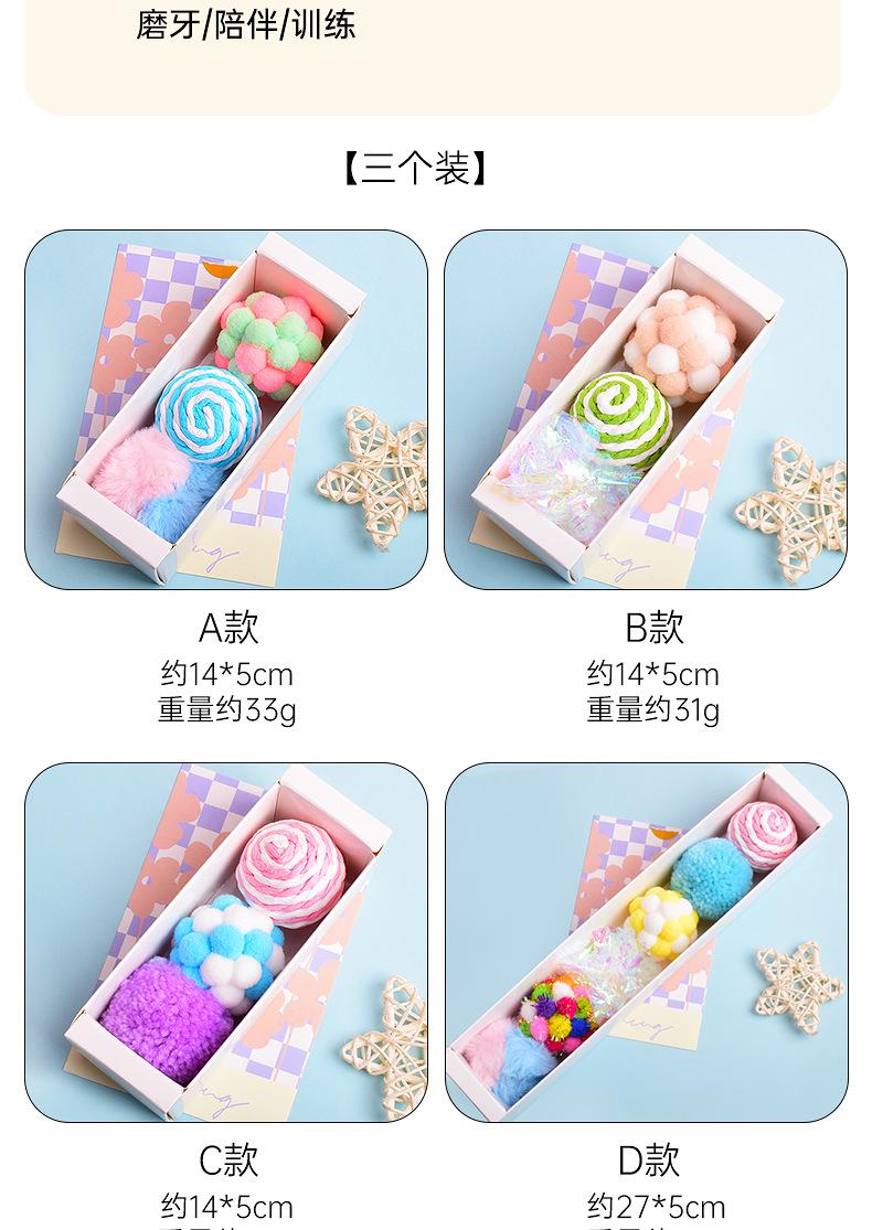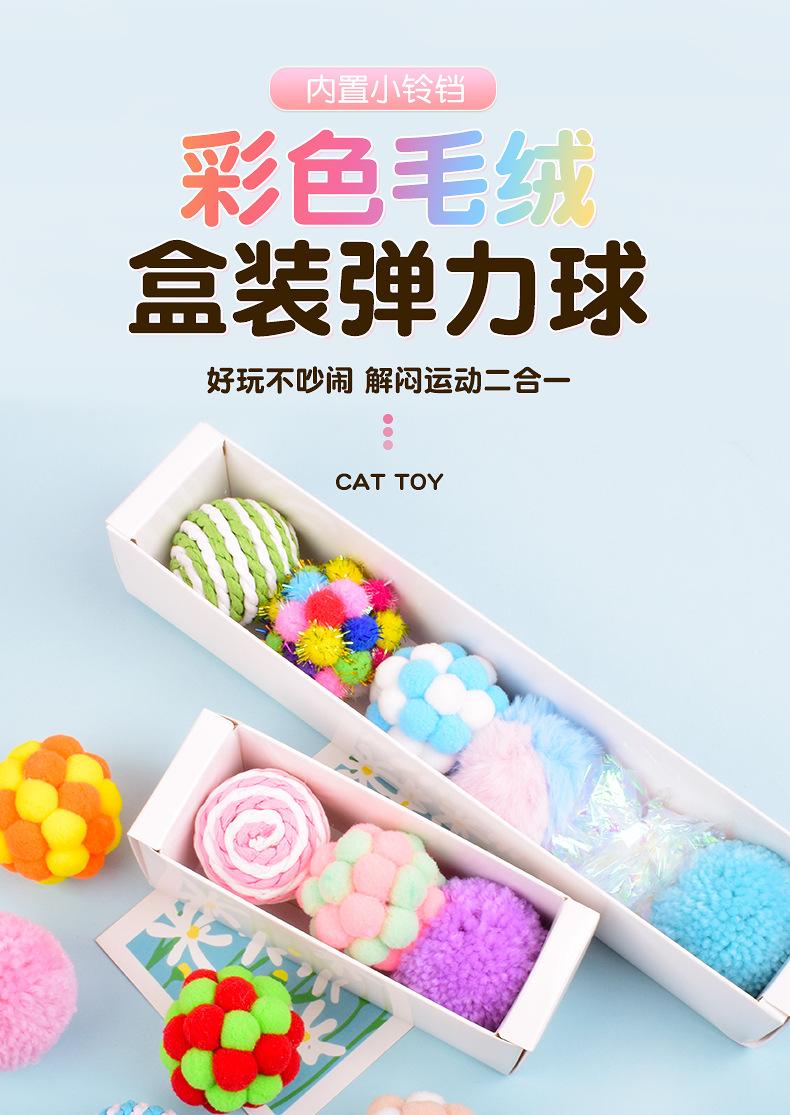 Juguete para gatos, pelota elástica hecha a mano, pelota de peluche con forma de campana, caja de regalo, pelota auto-resistente al rayado, resistente a las mordeduras y a las explosiones transfronterizas.