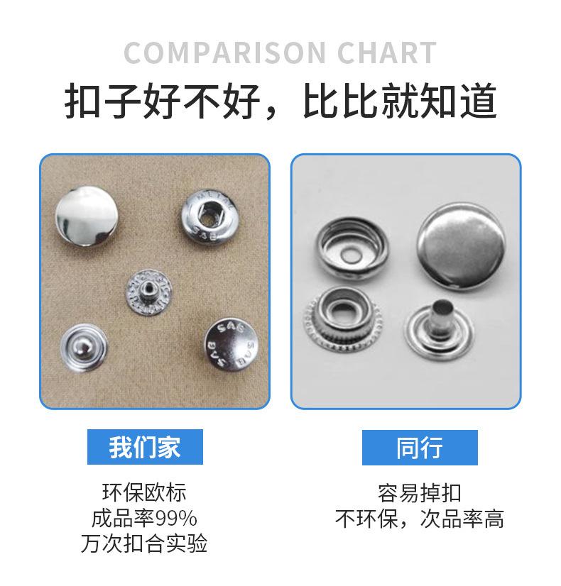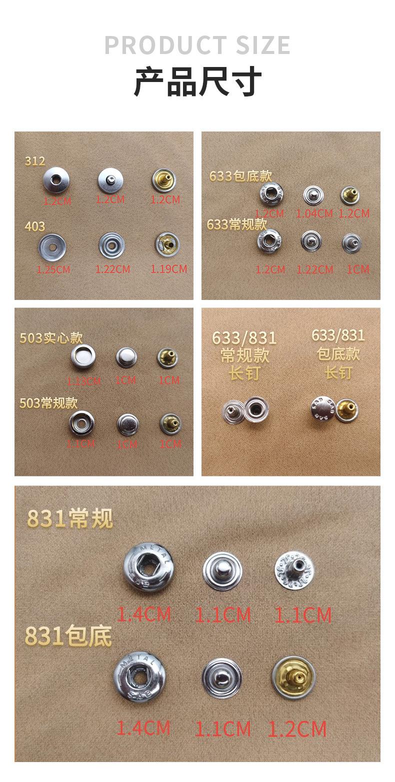 Botón a presión SAB 68, botón a presión de metal de cobre, tres botones de cobre sin níquel, botones de chaqueta al por mayor