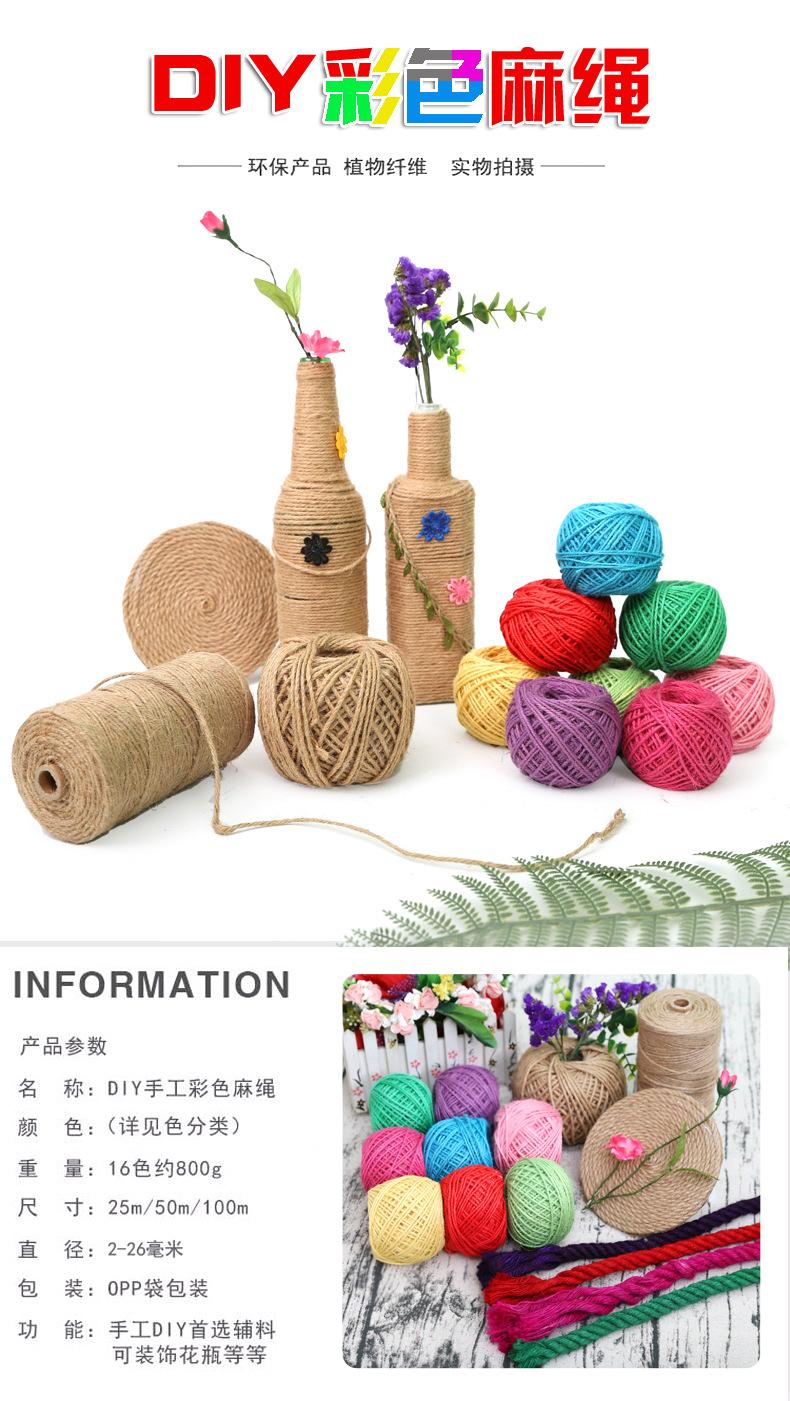 Color cuerda de cáñamo diy grosor tejido a mano cuerda tejida adorno línea cordel color material estilo retro