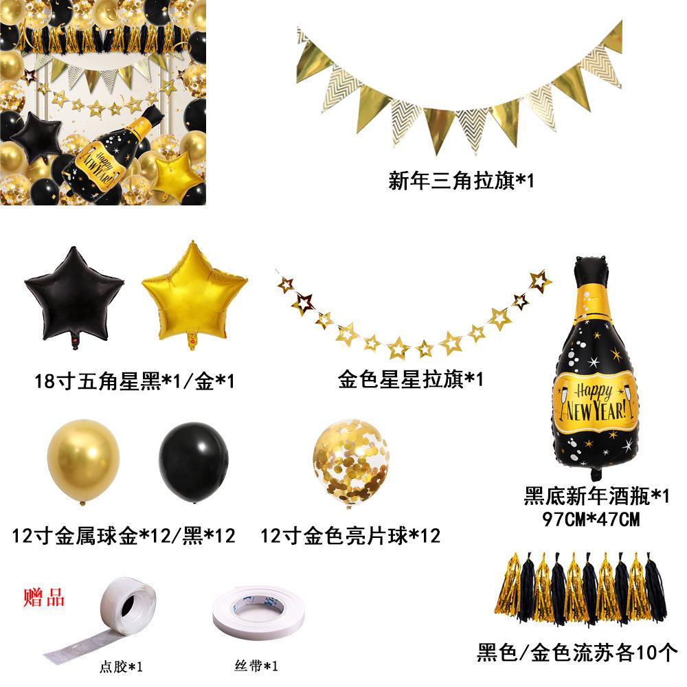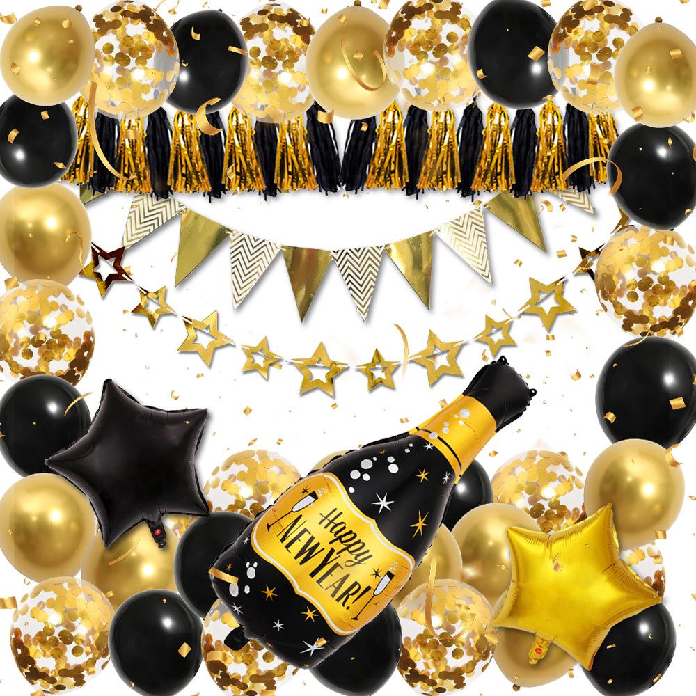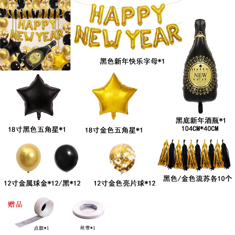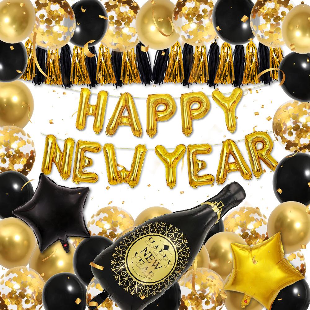 Traje de globo de Año Nuevo de Amazon, feliz año nuevo, decoración de fiesta de Año Nuevo, globo negro dorado