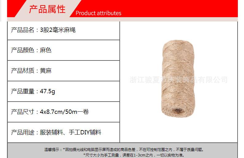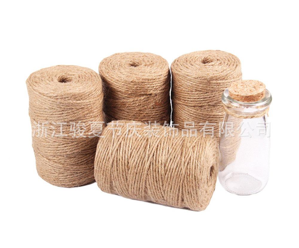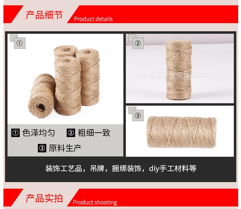 Cuerda de cáñamo al por mayor, 3 hebras, 2 mm, natural, 50 m, para decoración navideña, bricolaje, embalaje, accesorios de mano, cuerda tejida