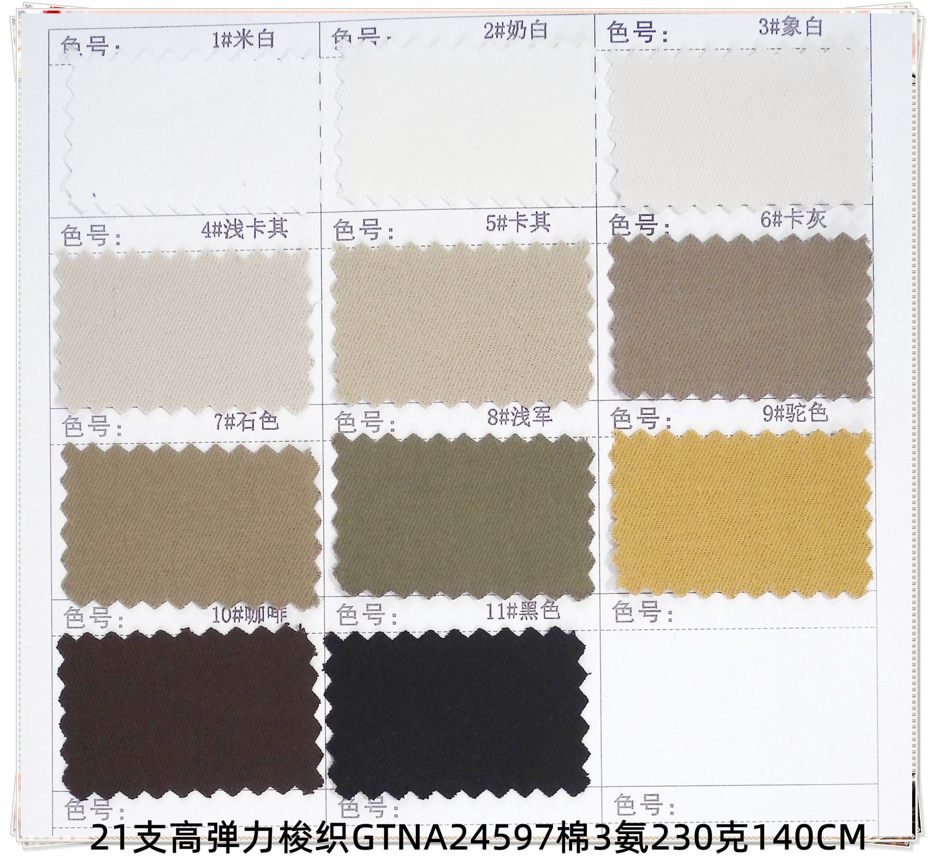 【Acerca del color】:Tela21X21+70D hilo elástico punto algodón tejido elástico tela para pantalones de otoño e invierno algodón elástico sarga elástica tejido de puro algodónLos colores se basan en la carta de colores. Todas las cartas de colores son los colores reales.Indique el número de color específico al momento de la compra.