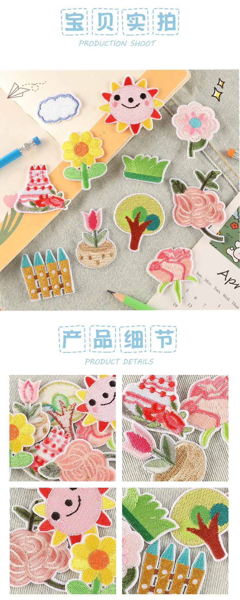 Etiqueta bordada por computadora, pegatina bordada, planta, flor, árbol, accesorios de ropa, parche Zhang Zi, insignia, etiqueta de tela, emblema de zapatos, pegatina de tela
