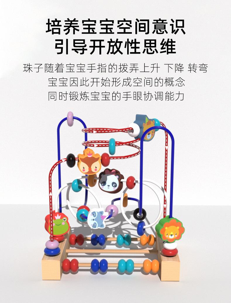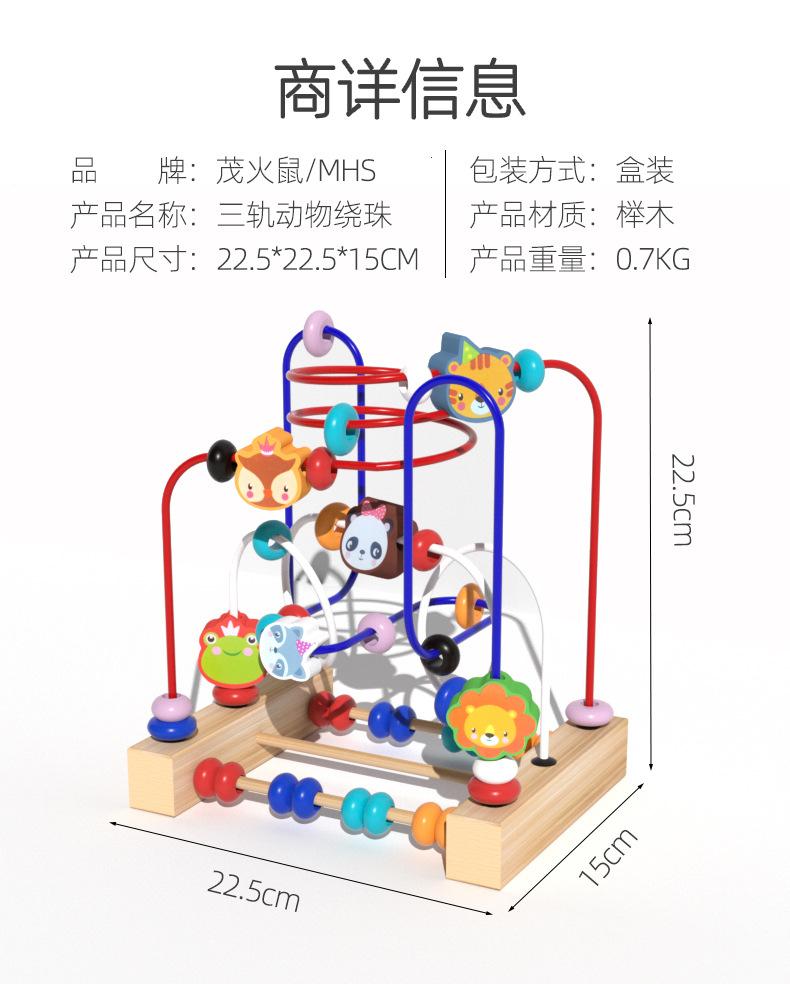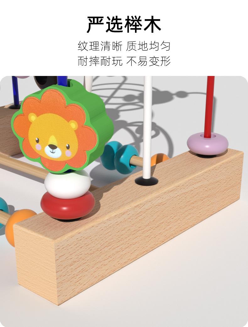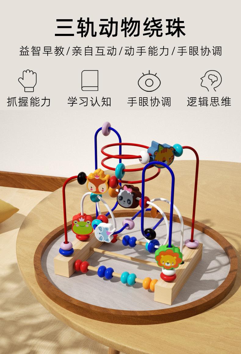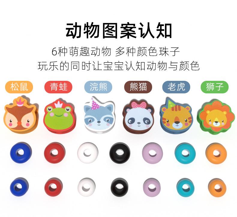 Juguete de madera con cuentas de animales multifuncionales para bebés, con tres pistas, para entrenamiento de coordinación mano-ojo, bloques educativos de educación temprana.