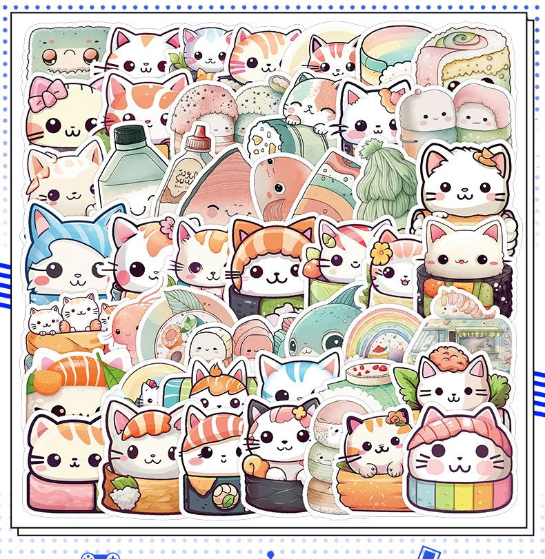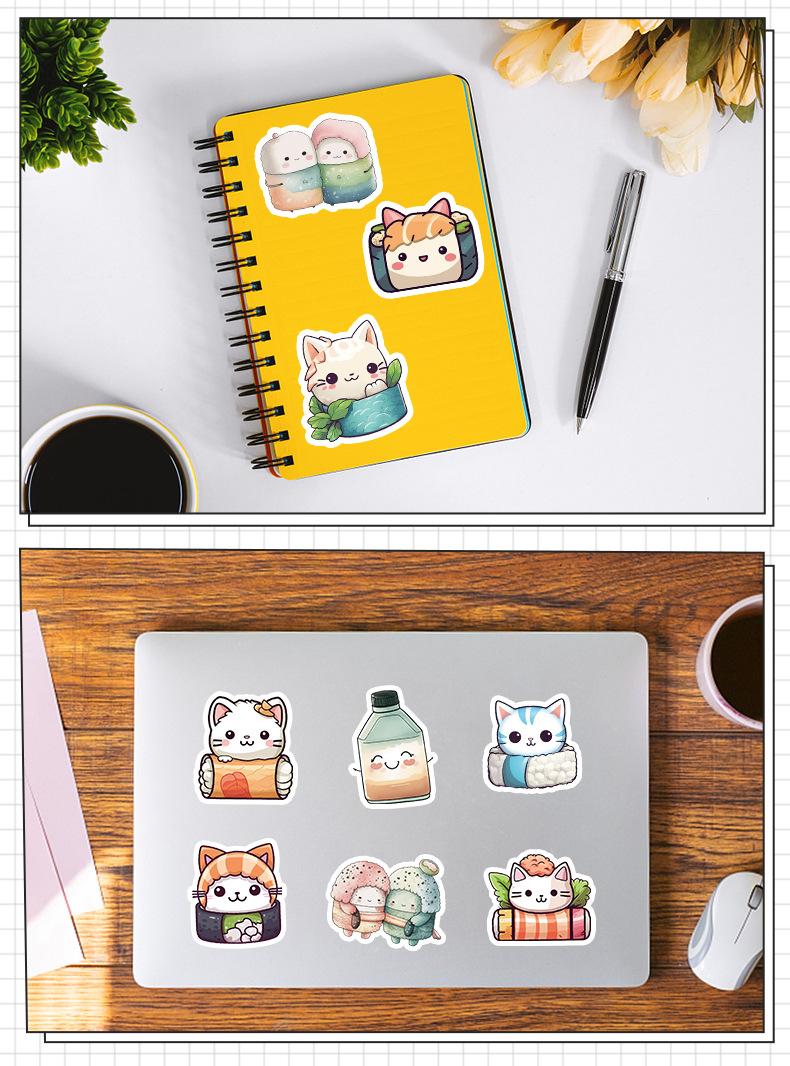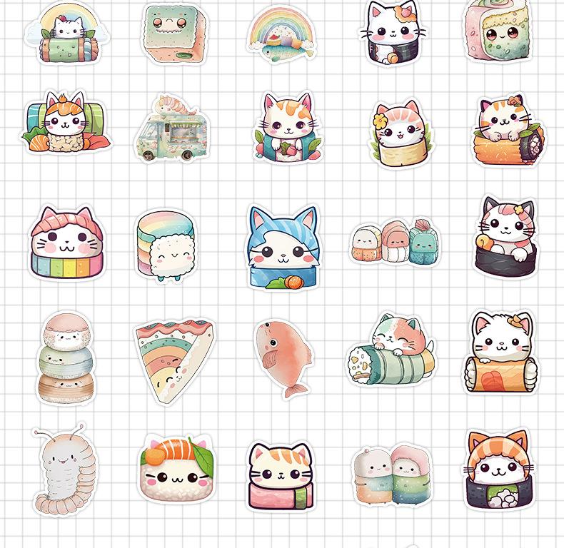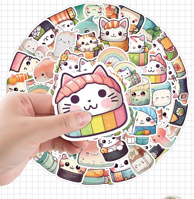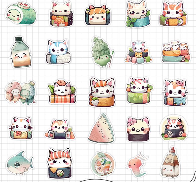 50 pegatinas de grafiti de sushi kawaii para teléfono móvil, taza de agua, cuaderno, decoración, pegatinas impermeables creativas para equipaje