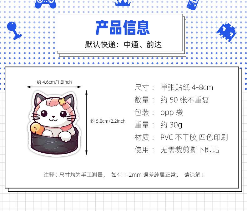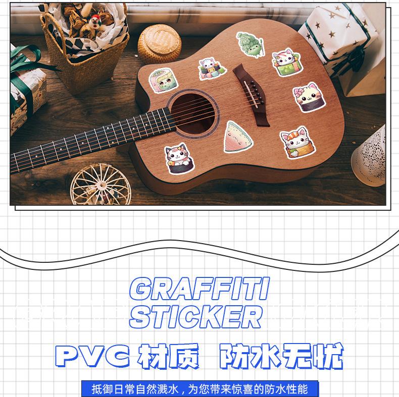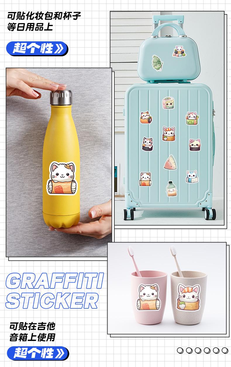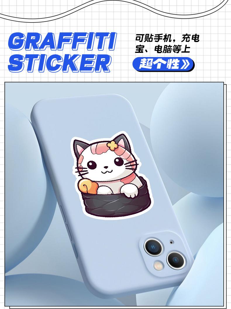 50 pegatinas de grafiti de sushi kawaii para teléfono móvil, taza de agua, cuaderno, decoración, pegatinas impermeables creativas para equipaje