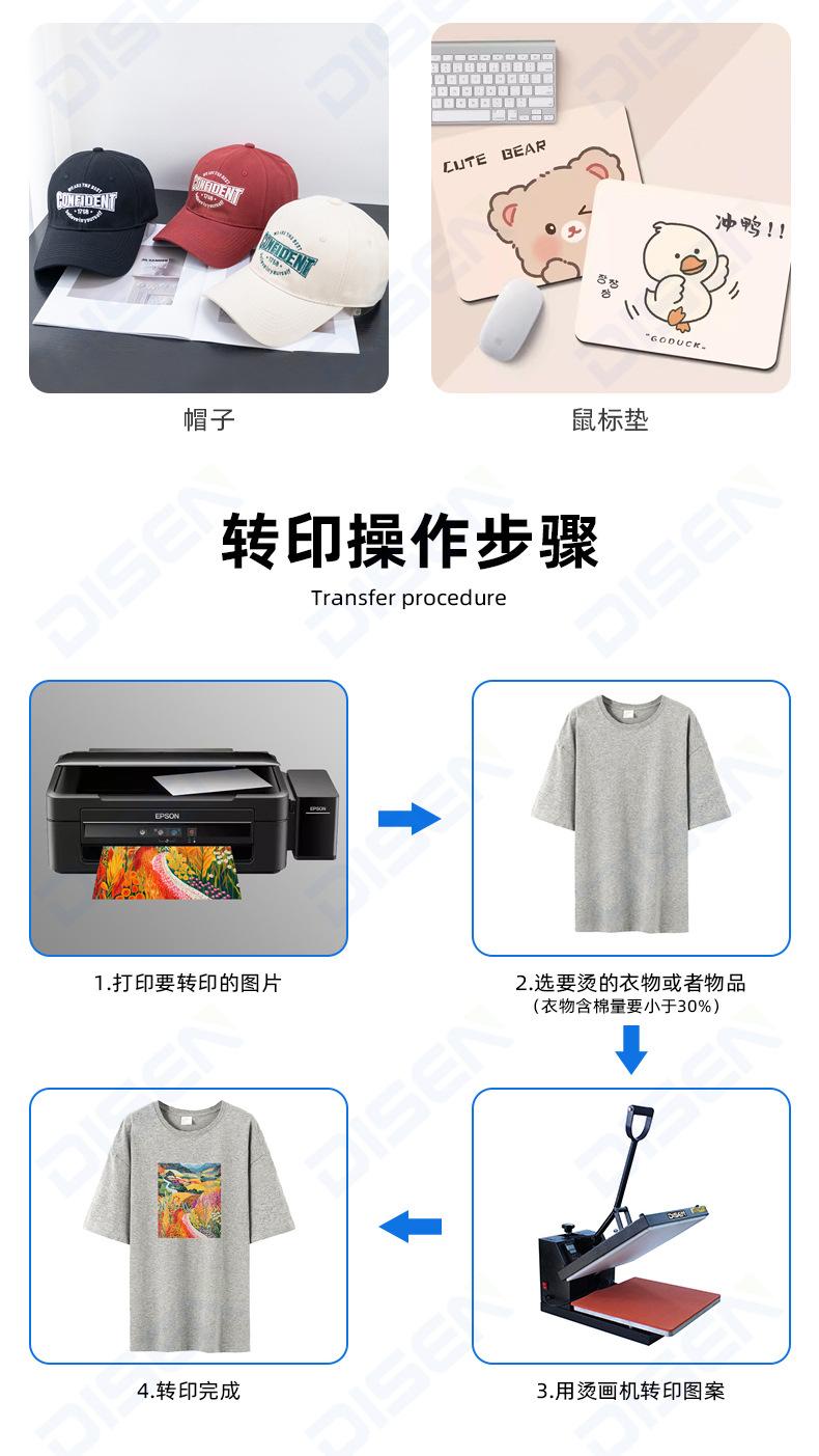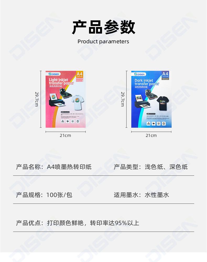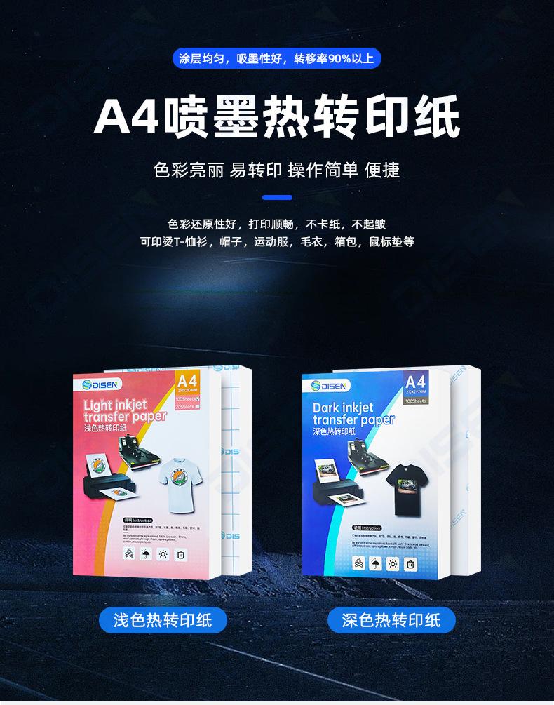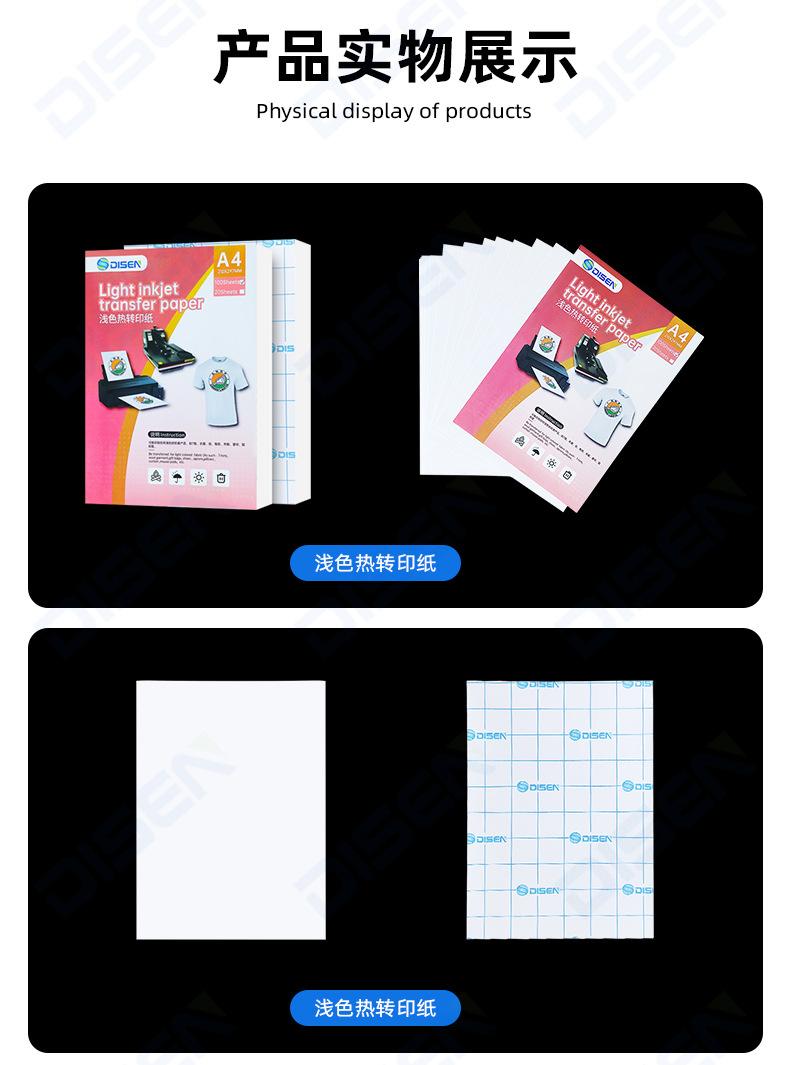 Papel de transferencia térmica para estampado en caliente, universal, de inyección de tinta láser, de color azul claro, de hierro, tamaño A4, lavable, resistente a la decoloración, precio de fábrica