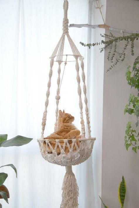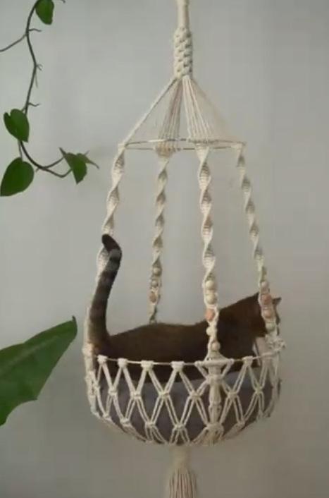Hamaca Nido Tejido Bohemio para Gato Estilo Europeo Bolsa de Red Colgante de Verano Cesta Colgante para Gato Columpio Cama para Mascota C-13